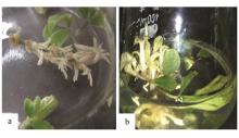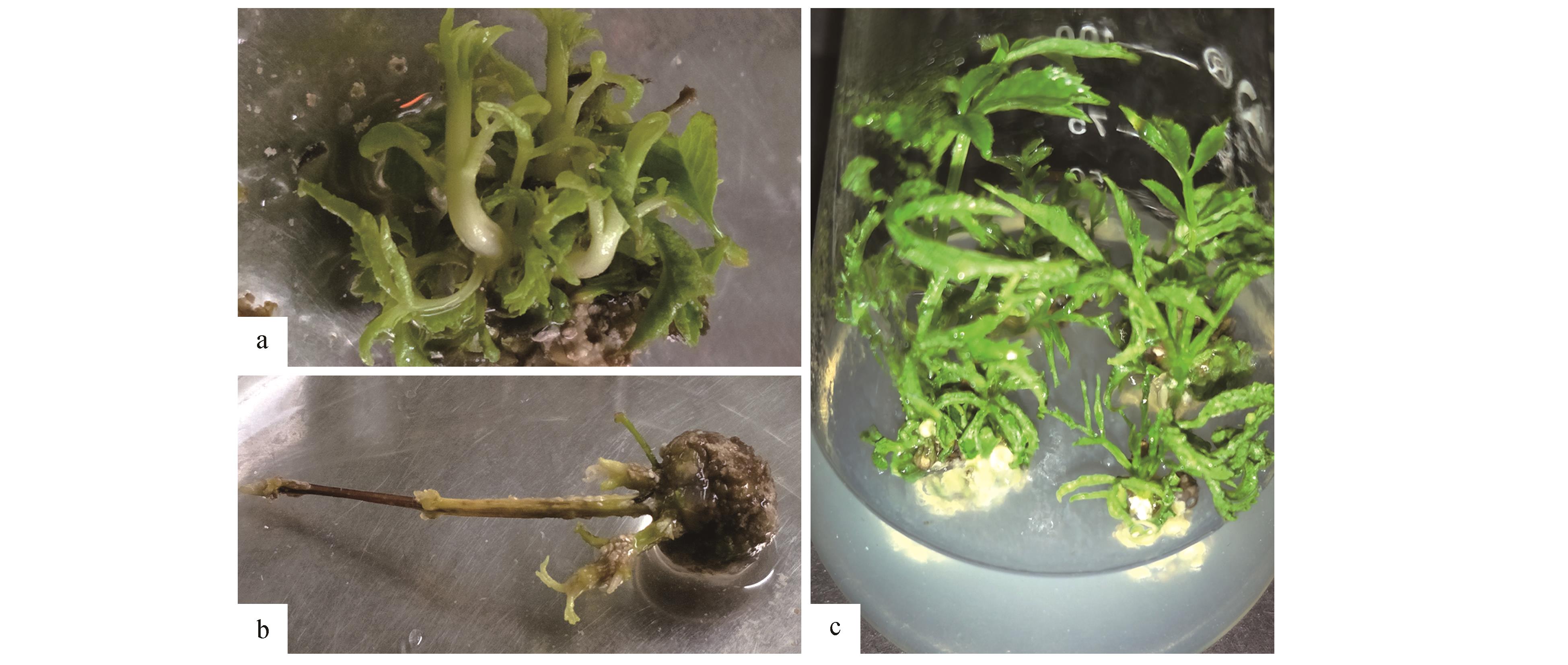 以茎部木质化、叶片老化、顶芽休眠的水曲柳组培苗为材料,开发了一种液体—固体交替培养的水曲柳(Fraxinus mandshurica Rupr.)快速高效的再生系统,该技术通过液体悬浮培养在短时间内使腋芽萌发,并在固体培养中腋芽离体再生获得新的组培苗。在补充不同植物生长调节剂的WPM液体和固体培养基上,可以诱导水曲柳腋芽萌发并伸长成苗。发现在添加了0.6 mg·L-1 TDZ的WPM液体培养基中暗培养,7~15 d之内可促使水曲柳腋芽100%萌发,将萌发的嫩芽切下后接种到0.05 mg·L-1 TDZ和0.6 mg·L-1 BA的WPM固体培养基中光照培养,腋芽在1~2个继代内可以伸长成苗,苗平均高为2.64 cm,增殖系数达到4.04。将生根的苗移栽,50 d后存活率为90%。该技术的建立有助于水曲柳的大规模繁殖,并且液体—固体交替循环培养,简单、可控、易操作,适用于不同的生产条件,减少成本。