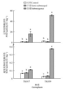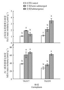 为了筛选出耐涝能力良好的番茄(Solanum)种质,以50份番茄种质作为研究对象,比较其在半淹及全淹处理后的成活率和各项生理指标,筛选出12个在7 d全淹处理后存活率为100%的耐涝型番茄种质,发现耐涝型番茄种质在普通番茄(S. lycopersicum)、樱桃番茄(S. lycopersicum var. cerasiforme)和醋栗番茄(S. pimpinellifolium)中均有分布;进一步对耐涝型番茄TK017和淹水敏感型番茄TK039的分析表明耐涝型番茄TK017在全淹胁迫下能够更有效地控制体内活性氧含量,从而提高番茄的耐涝能力。