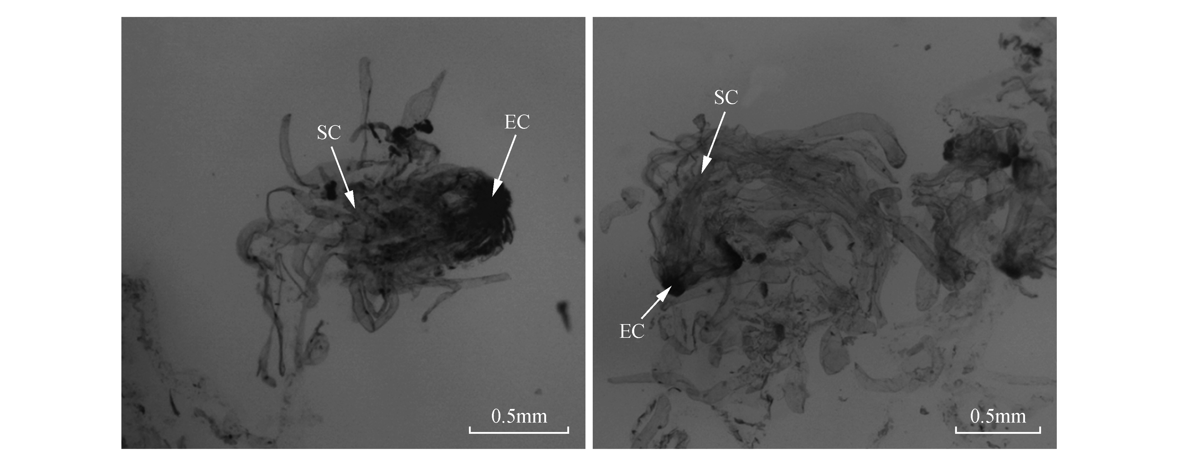 采用解剖观测和石蜡切片技术,对朱顶红品种‘圣诞快乐’花芽生长情况、花器官分化和性细胞分化过程进行了研究,以明确朱顶红花芽分化特征,为其花发育、花期调控、杂交育种和系统分类研究提供理论依据。结果表明:‘圣诞快乐’朱顶红每年产生2个花序芽,在第2年完成其内花芽花器官分化,经过低温作用后于第3年盛开,其中第2个花序偶有败育发生;花器官分化过程包括花原基分化期、外花被原基分化期、内花被原基分化期、雄蕊原基分化期、心皮原基分化期,对应的花芽大小分别约为0.02、0.05、0.1、0.2、0.3 cm,所有花器官均为螺旋状向心式发生;朱顶红花药4室,花药壁从外至内由表皮、药室内壁、中层和绒毡层组成,绒毡层类型为分泌型,小孢子减数分裂类型为连续型,四分体排列方式为十字交叉型,成熟花粉粒为2-细胞型;朱顶红雌蕊3心皮,下位子房,中轴胎座,3心室,每室两列倒生胚珠,胚珠为双珠被,厚珠心,具葱型胚囊。