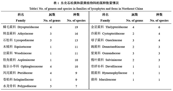 中国东北地区是我国北方石松类和蕨类植物最丰富地区,对其区系的系统研究是区域石松类和蕨类植物资源管理的基础和前提。本研究在文献分析和标本查阅的基础上,探讨了东北地区石松类和蕨类植物区系及其特征。结果表明:①东北地区有石松类和蕨类植物19科48属141种(含种下分类群)。②东北地区石松类和蕨类植物区系属温带性质,且包含一定的热带和寒带性质的成分,体现其地理成分的复杂性。③优势科属明显,7个优势科的种数占全部种数的63.83%,6个优势属的种数占全部种数的46.10%;单种和寡种属较多,占总属数的83.33%,所包含的种却只占总种数的47.52%。④东北地区是木贼科(Equisetaceae)在中国的重要分布区。⑤东北地区分布有石松类和蕨类植物的中国特有种30种,东北地区特有种4种(长白石杉Huperzia asiatica、宽鳞蹄盖蕨Athyrium yokoscense var. kirismaense、长齿对囊蕨Deparia pycnosora var. longidens和长白山金星蕨Parathelypteris changbaishanensis)。本研究是东北地区植物区系研究的必要补充,具有重要的理论和实践意义。