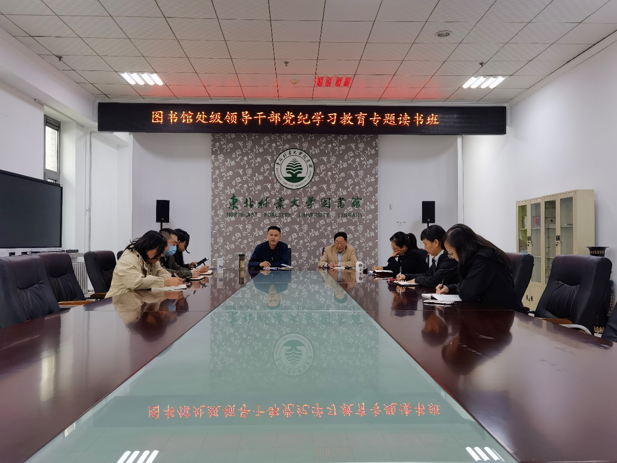 5月8日至10日,图书馆党总支举办处级领导干部党纪学习教育读书班。图书馆领导班子、党总支委员及支部书记参加了集体学习。会议由党总支书记王晓明主持。按照学习计划,5月8日,与会人员集体学习了《中国共产党纪律处分条例》,并贯通学习《习近平关于严明党的纪律和规矩论述摘编》《习近平关于全面从严治党论述摘编》的部分内容;5月9日,王晓明结合图书馆中心工作,为与会人员全面解读了《中国共产党纪律处分条例》内涵意义,....
