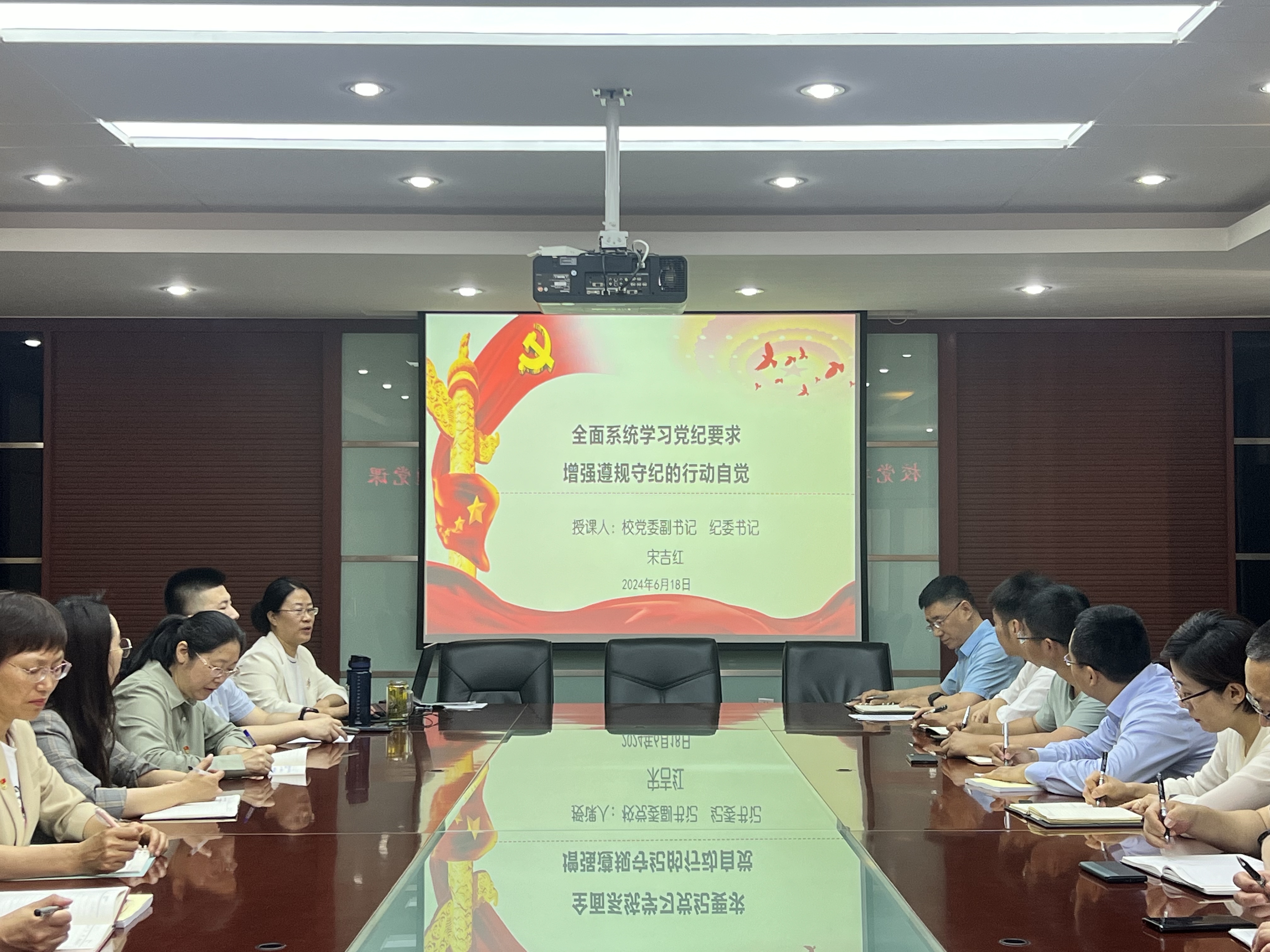 为深入推进党纪学习教育走深走实,切实增强党员干部政治规矩和纪律意识,6月18日,学校党委副书记、纪委书记宋吉红为审计处党支部和校园建设处党支部全体党员讲授题为《全面系统学习党纪要求,增强遵规守纪的行动自觉》的专题党课。宋吉红围绕党史中的纪律要求、从典型案例看党纪要求、增强党纪学习教育的行动和自觉三方面深入阐释,并结合审计和校园建设工作提出明确要求。宋吉红强调,当前的形势和任务都要求必须加强纪律建设....