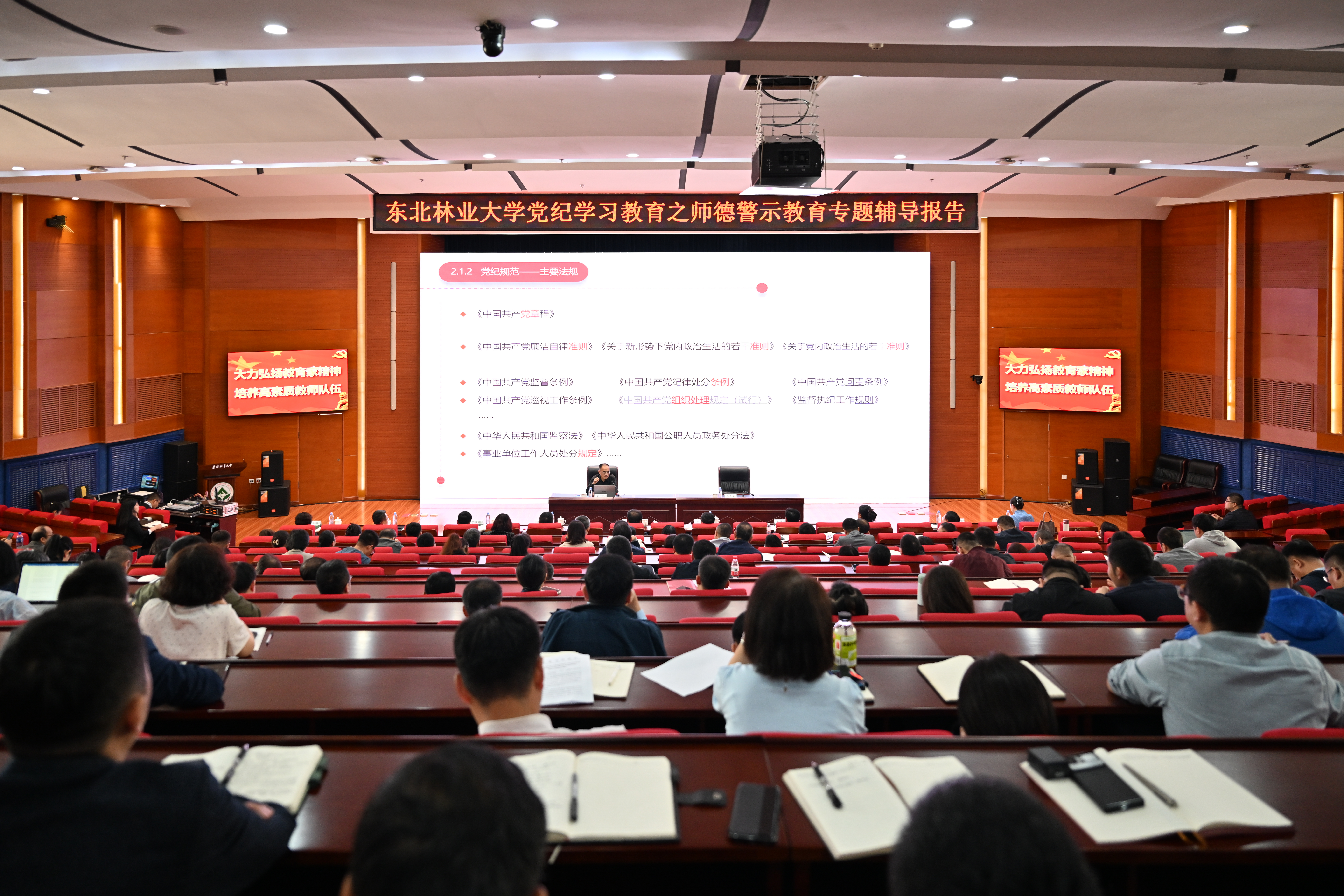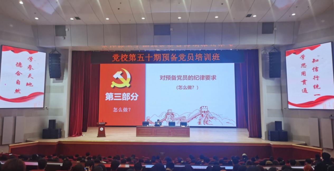 为进一步贯彻落实党的二十大精神和习近平总书记重要指示批示精神,扎实开展党纪学习教育,5月11日晚,学校党委副书记、纪委书记宋吉红在科学会堂,以“学习新修订《条例》,增强党的纪律与规矩意识”为题,为党校第50期预备党员培训班学员讲授第一课。宋吉红以青年党员要“扣好人生第一粒扣子”为切入点,围绕“为什么需要严肃党纪”“党纪的内容及表现形式”“守牢底线,做遵规守纪的大学生”三个方面,结合新修订的《中国共产...
