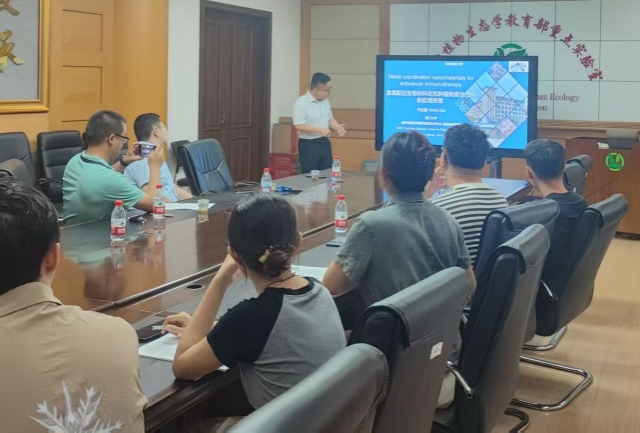 报告中,两位专家详细讲授了金属配位生物材料、催化医用二维材料在抗肿瘤领域的前沿知识,并围绕“抗肿瘤生物材料创新与应用”核心主题,汇报了团队的研究进展。报告结束后,两位专家与现场师生就金属配位材料的药物控释机制、二维纳米材料的生物相容性优化、活性氧在不同抗肿瘤体系中的作用差异等议题展开了热烈讨论,为与会师生的相关研究提供了新思路与方向。
