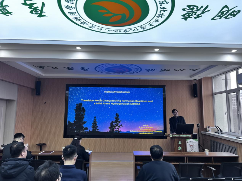 2025年12月1日14时30分,北京大学化学与分子工程学院余志祥教授应邀莅临我院,为《立新讲坛》第九期作学术报告。报告在知化楼321会议室进行,由院长陈春霞教授主持,相关教师及研究生参与了报告会。