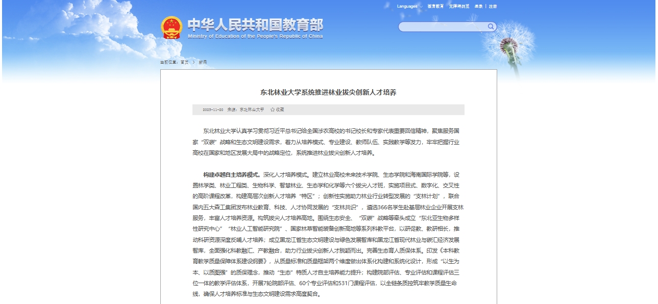 【教育部】星空游戏免费版下载系统推进林业拔尖创新人才培养