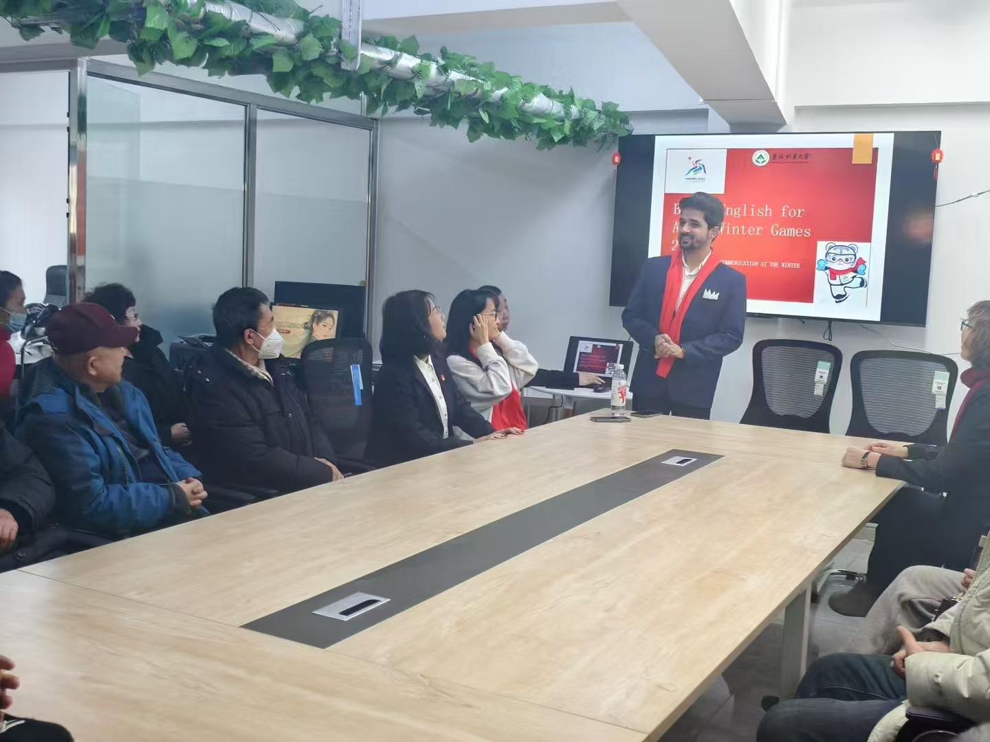 “Hello,你好!”“WelcometoHarbin!欢迎来到哈尔滨”“Hello,WhatcanIdoforyou?我能帮你做些什么”,社区里居民们一遍遍跟读,满是学习英语的热情与迎接亚冬的喜悦。1月14日,我校巴基斯坦籍硕士研究生付文昊和印度尼西亚籍硕士研究生黄汶棋,一起来到香坊区进乡街道二新社区,为这里的居民和工作人员带来了一堂别开生面的英语课。留学生们通过角色扮演和情景模拟等方式,向大家讲授实用的英语日常用语和亚冬会相关的词汇、短...