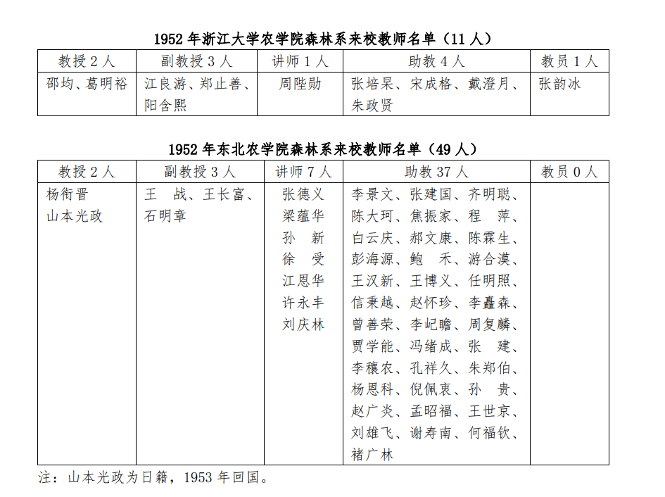 据《李范五回忆录》记载,1952年7月上旬,教育部在北京召开全国农学院院长会议,拟出了全国农学院院、系调整和专业设置方案。会议决定合并一批大学的森林系,根据全国各大林区和师资力量,在华北、东北、华东三个大区成立了北京、东北、南京三所林学院。为什么把浙江大学森林系合并到东北?据李范五回忆,这是时任林业部部长梁希的意见,因为梁希部长从日本留学归来时,曾在浙江大学森林系任过教,熟悉那里的情况,知道这个系的师资力量比较强,所以把最强的力量放在了森林面积最大的东北。【3】