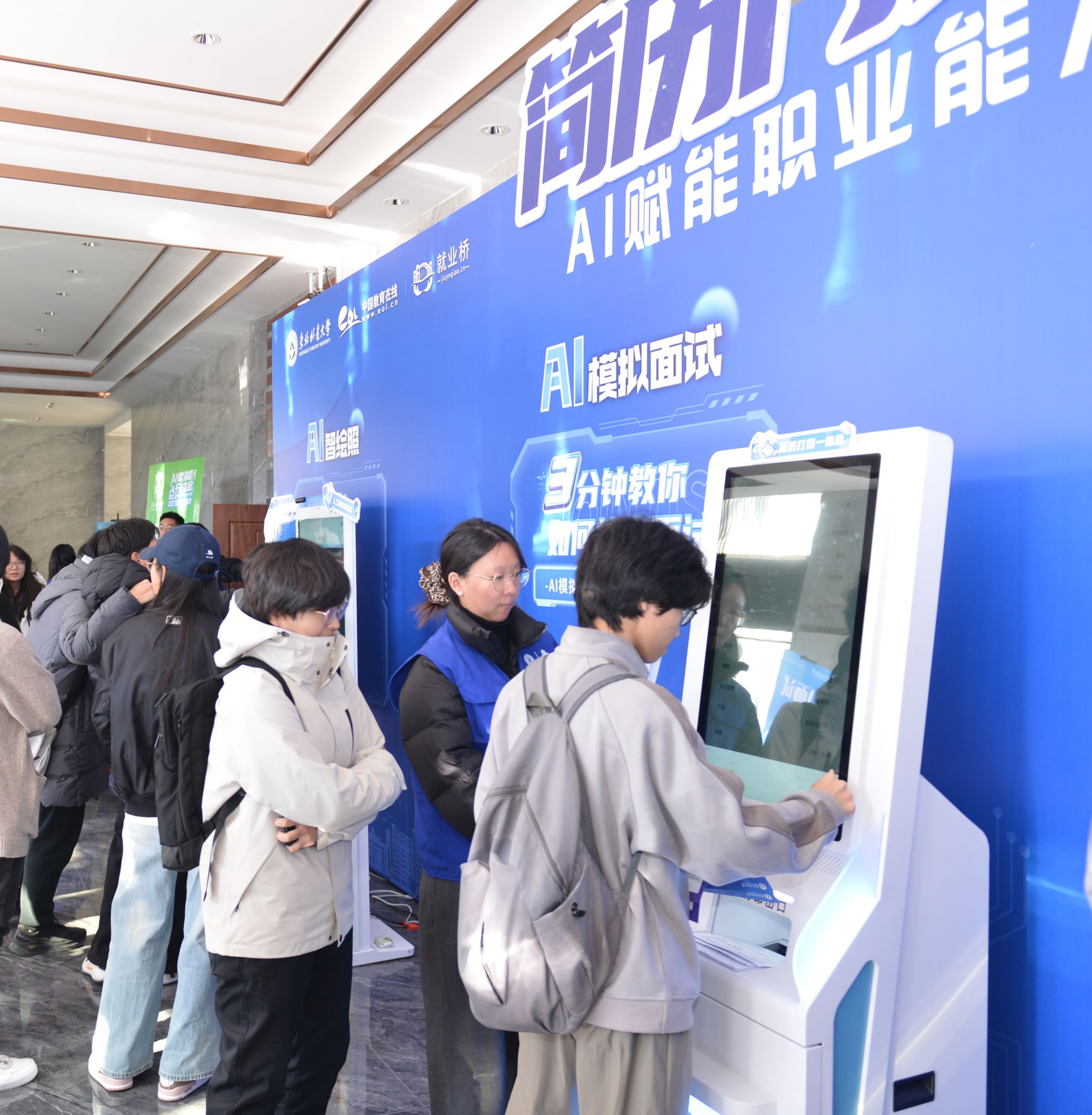 开诊时间正值中午学生午休时间,科学会堂入口处的“职业探索一体机”前人头攒动。AI咨询、生涯测评、学涯规划、职业探索……系统从心理、兴趣、性格等多维度为求职者生成个性化报告;沉浸式VR体验区更是吸引众多同学驻足,戴上VR眼镜,学生们便“走进”智能交通工地、新能源实验室等场景,直观感受目标岗位的工作环境;便捷操作的“AI简历打印一体机”,学生扫码,便可生成一份符合“PAR法则”的“加强”简历;人工智能面试屏前,学生选择自己的兴趣职业,机器自动生成问题,并有一个数字面试官开启线上面试。