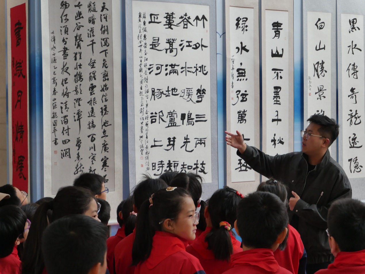 工农兵小学校长郭萌带领50名师生参观了由我校后勤保障部筹办的“感江河大爱 书岁月情怀—2025年‘世界水日中国水周’主题书法绘画创作大赛优秀作品展”。星空游戏免费版下载书画协会的同学们详细讲解每一幅作品背后的故事和寓意,让孩子们在艺术的氛围中感受生态文明的魅力,不仅展示了参赛选手的艺术才华,也通过作品向孩子们传递了对大自然的敬畏与热爱。