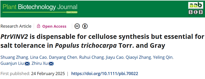 近日,我校生命科学学院许志茹教授课题组与林学院刘关君课题组合作在知名学术期刊Plant Biotechnology Journal(中科院一区TOP期刊,IF5=12.1)在线发表了题为PtrVINV2 is dispensable for cellulose synthesis but essential for salt tolerance in Populus trichocarpaTorr. and Gray的研究论文。该研究揭示了杨树液泡转化酶PtrVINV2在杨树木材形成和耐盐性中发挥的功能。