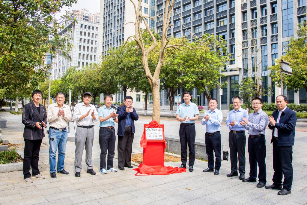 张志坤与河池学院的校领导和银龄教师一同为火焰树揭牌