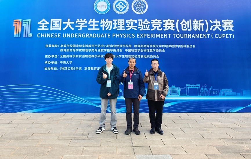 11月21日至23日,第十一届全国大学生物理实验竞赛(创新)总决赛在中南大学潇湘校区举行。经过师生近半年的精心准备与反复打磨,由我校理学院选派的两支队伍参加了讲课类比赛。其中,由教师倪海明指导,2023级物理学专业本科生张奕博、黄少奇与李绍云共同完成的参赛作品“基于补偿法测量电动势的电位差计实验”,在通过初赛与复赛的严格评审后成功晋级决赛,并最终荣获讲课类全国一等奖。该奖项不仅是我校首次在此项赛事中斩获一等奖,也是本届比赛中黑龙江省高校在讲课类组别中唯一的一等奖。