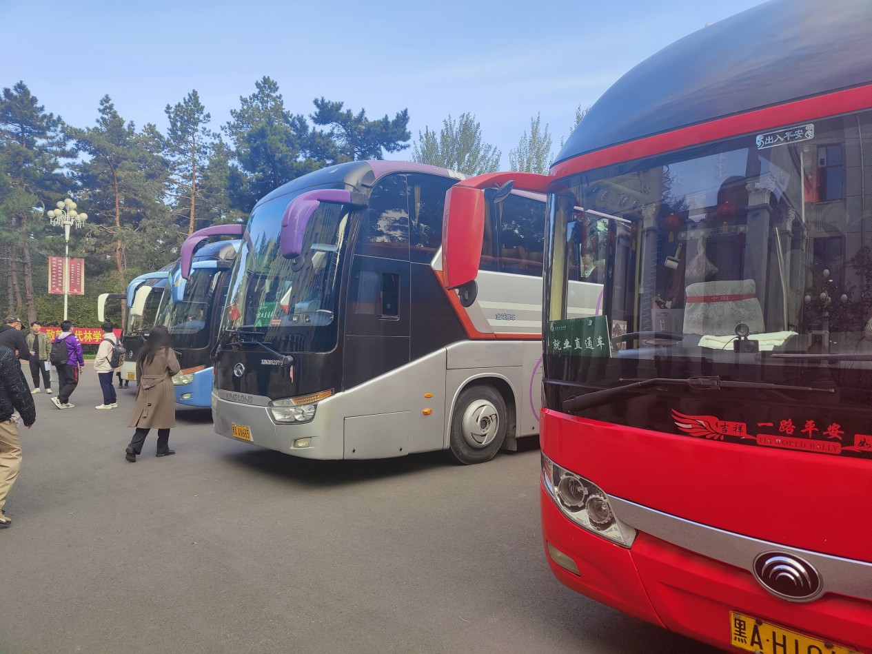 10月11日8时许,东林“就业直通车”再次发车,5辆大巴车在学校主楼门前集结,近300名东林毕业生有序排队乘车。他们将前往湖北省以及山东省烟台市名校名企在哈尔滨举办的招聘引才活动现场,找寻心仪岗位。