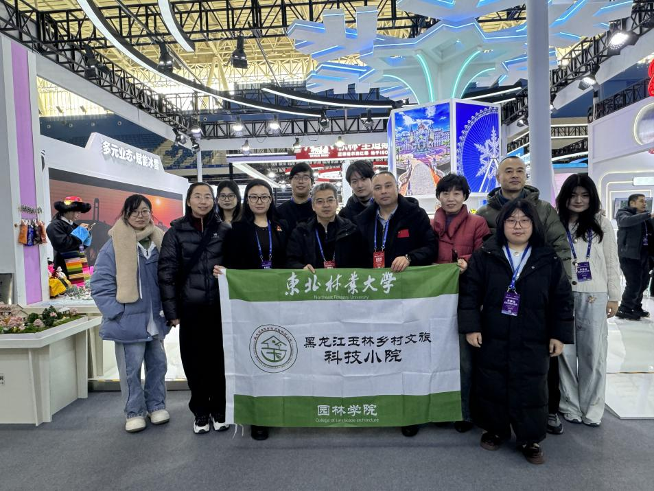 1月6日,以“冰链世界 雪舞未来——新动能 新纽带 新生态”为主题的2026哈尔滨国际冰雪经济博览会在哈尔滨会展中心盛大开幕。受哈尔滨市妇联的邀请,我校与黑龙江省万枫旅游开发有限公司联合,由园林学院师生创作的12幅特色景观作品精彩亮相展会,以微观景观艺术诠释黑龙江文旅科技小院驻地玉林村特色风貌,将地域文化、东北民俗与景观完美融合,成为展会中展现产教融合成果与冰雪文化创意的耀眼名片。