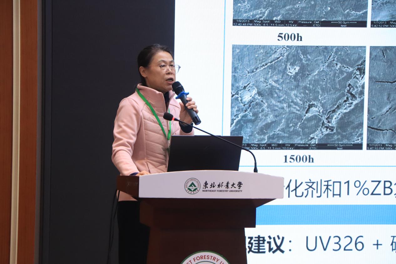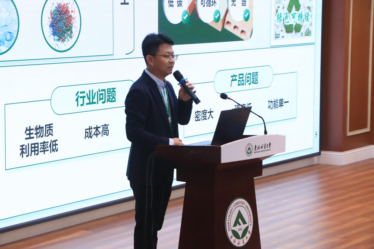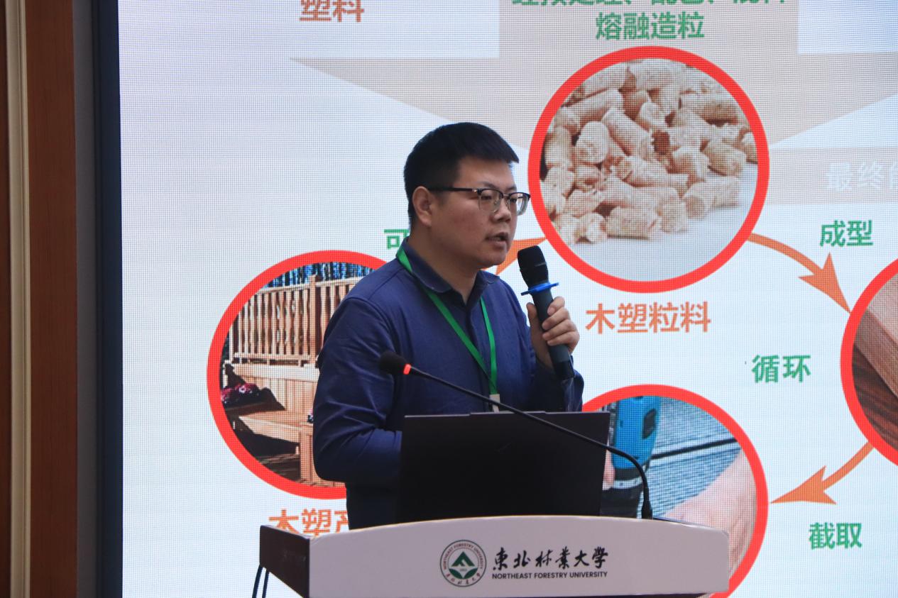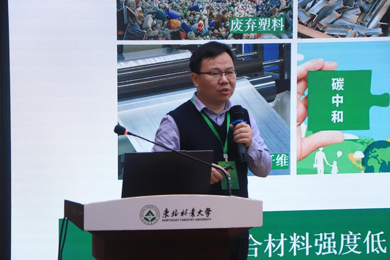 我校生物质复合材料团队宋永明、王伟宏、王海刚、房轶群、刘天等分别就木塑复合材料关键技术、新型材料设计、强韧化与低碳制造、阻燃研究等方向,展示了学校近五年的特色科研成果。