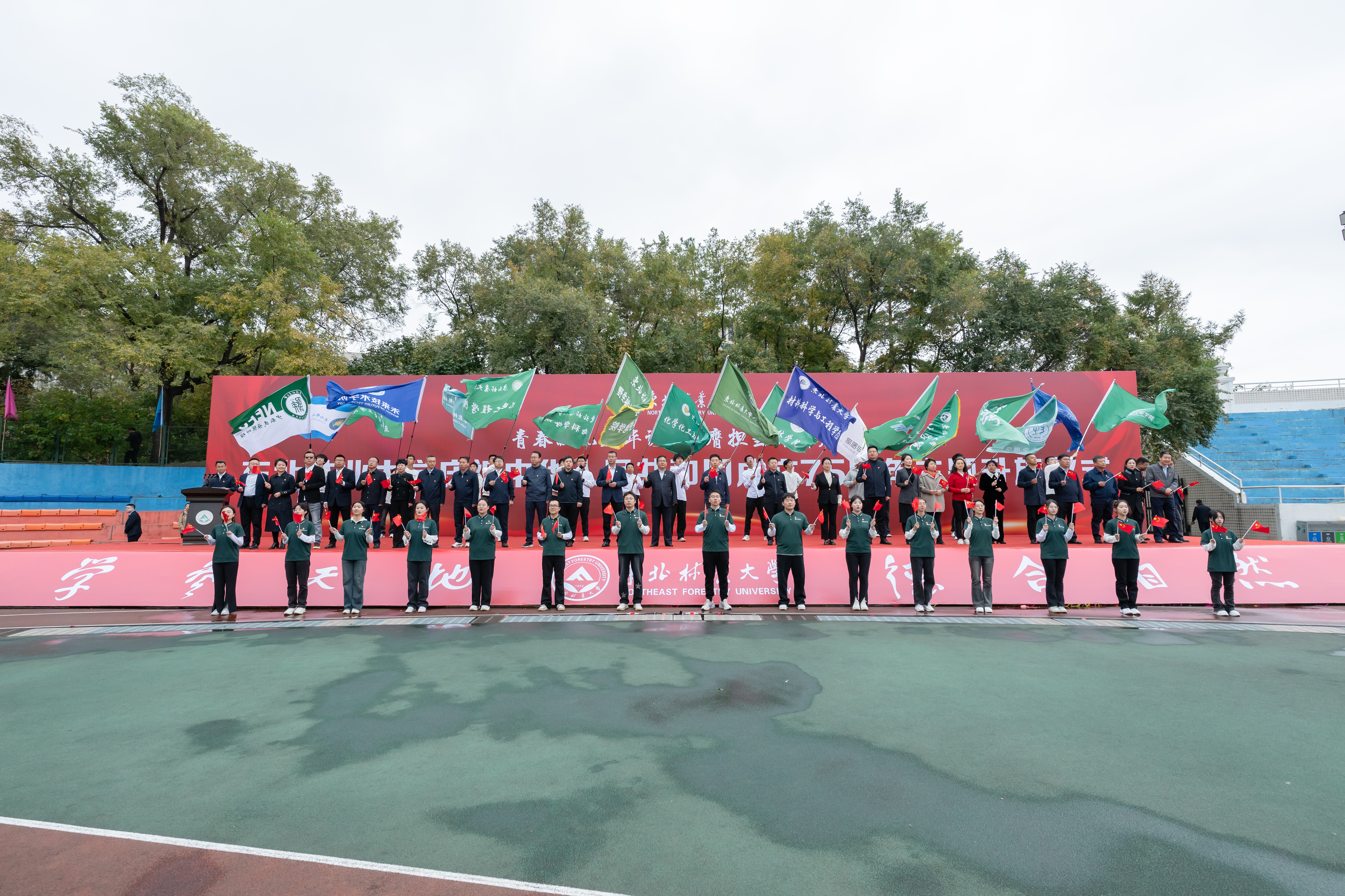 升国旗仪式结束后,很多师生意犹未尽,纷纷在场内合影打卡。未来技术学院辅导员李梦阳表示,红旗飘飘,飘过的是75年砥砺奋进,飘向的是2035年建成教育强国的战略目标。作为东林最年轻学院的辅导员,我将赓续东林精神谱系,着眼未来发展大势,以“培养复合型科技创新领军人才”目标为指引,培养服务国家“双碳”战略的一流人才。林学院2021级本科生张晋榕说,尽管每年国庆都会有宏大的升国旗仪式,但是年年心境和感悟都不同,始终不变的是五星红旗升起后难以言表的激动之情。作为一名大四毕业生,我们要牢记国旗下的誓言和张志坤书记的谆谆教诲,践行“生态报国,兴林担当”的绿色使命,不断学习,提升自我,为火热青春添彩、为东林青年代言。材料科学与工程学院2024级硕士研究生崔淑婷表示,张书记的微党课催人奋进,仪式最后的齐唱又“燃”又“飒”,令人印象深刻,作为一名林科方向的研究生,我将以更加饱满的热情和昂扬的斗志投身到学习、科研和实践中,将论文写在中国大地,以实际行动守护祖国的绿水青山!