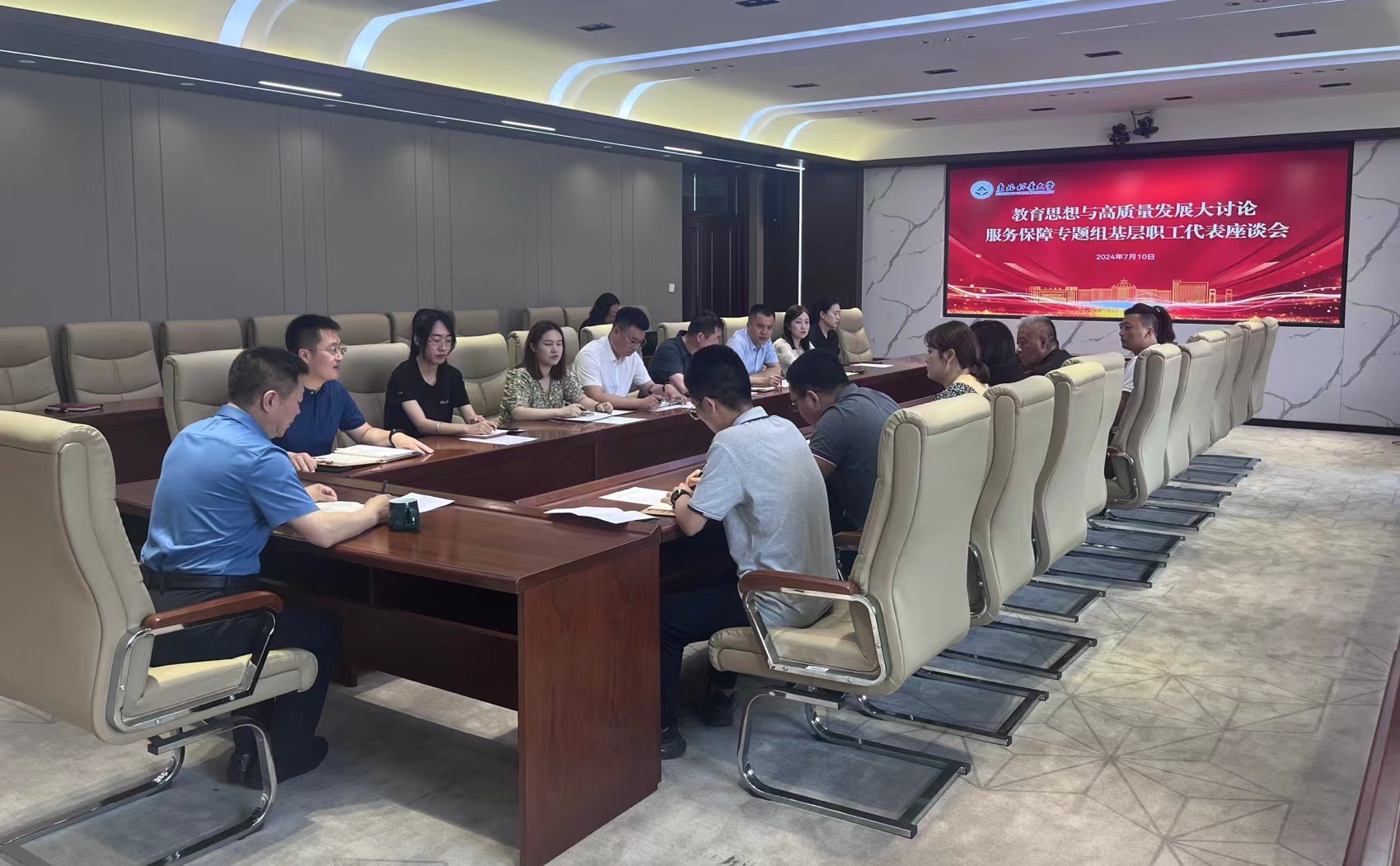 7月10日,学校在综合办公楼608会议室召开教育思想与高质量发展大讨论服务保障专题组基层职工代表座谈会。学校党委常委、副校长翟雪峰出席会议。会议由后勤服务总公司党总支书记王艳东主持。