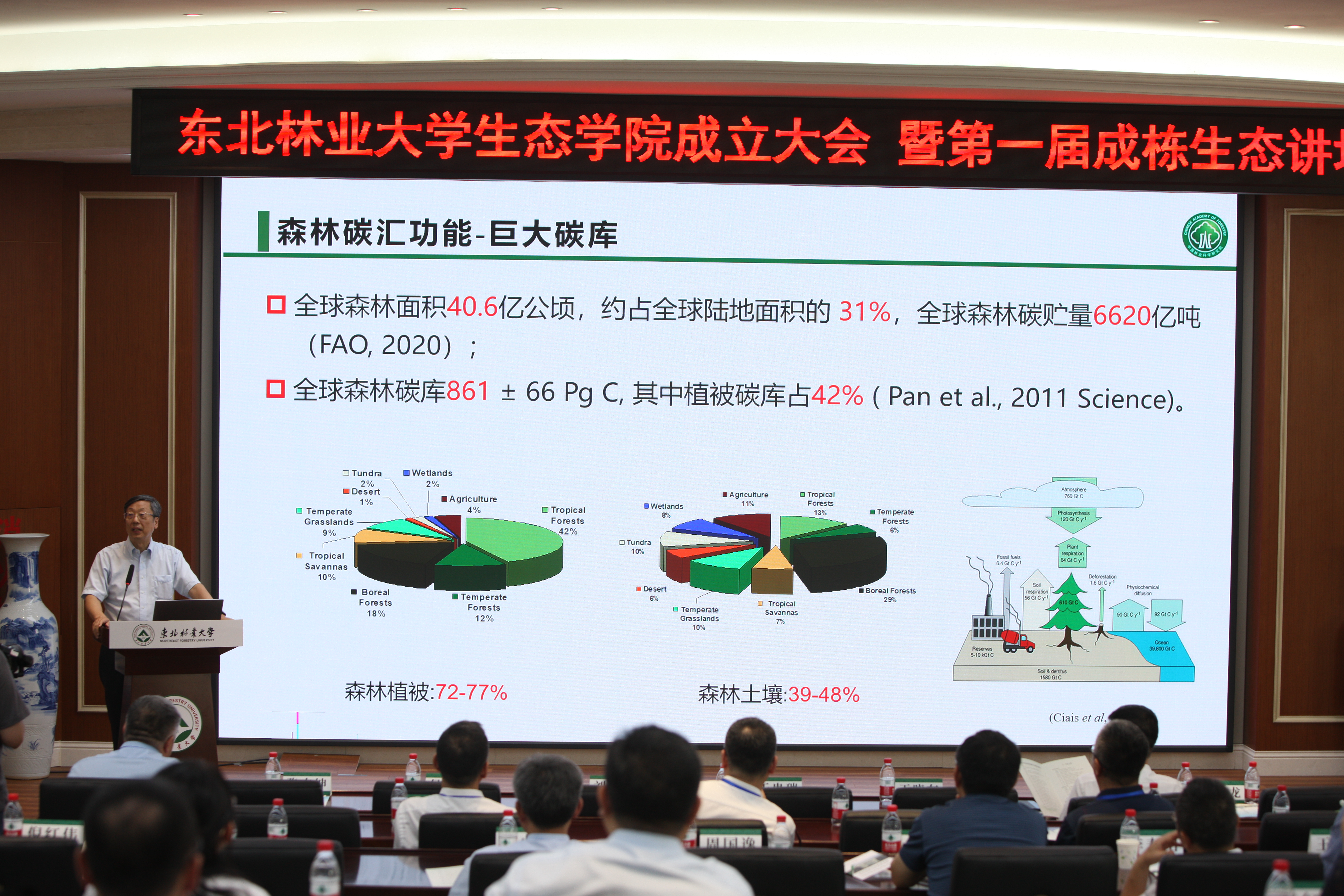 成立大会后,于贵瑞院士和刘世荣院士分别做了“生态学与生态系统科学”和“中国森林碳储、碳汇变化预估与潜力提升途径”大会主旨报告,分享了对生态学发展以及中国森林碳汇及其潜力的最新思考。