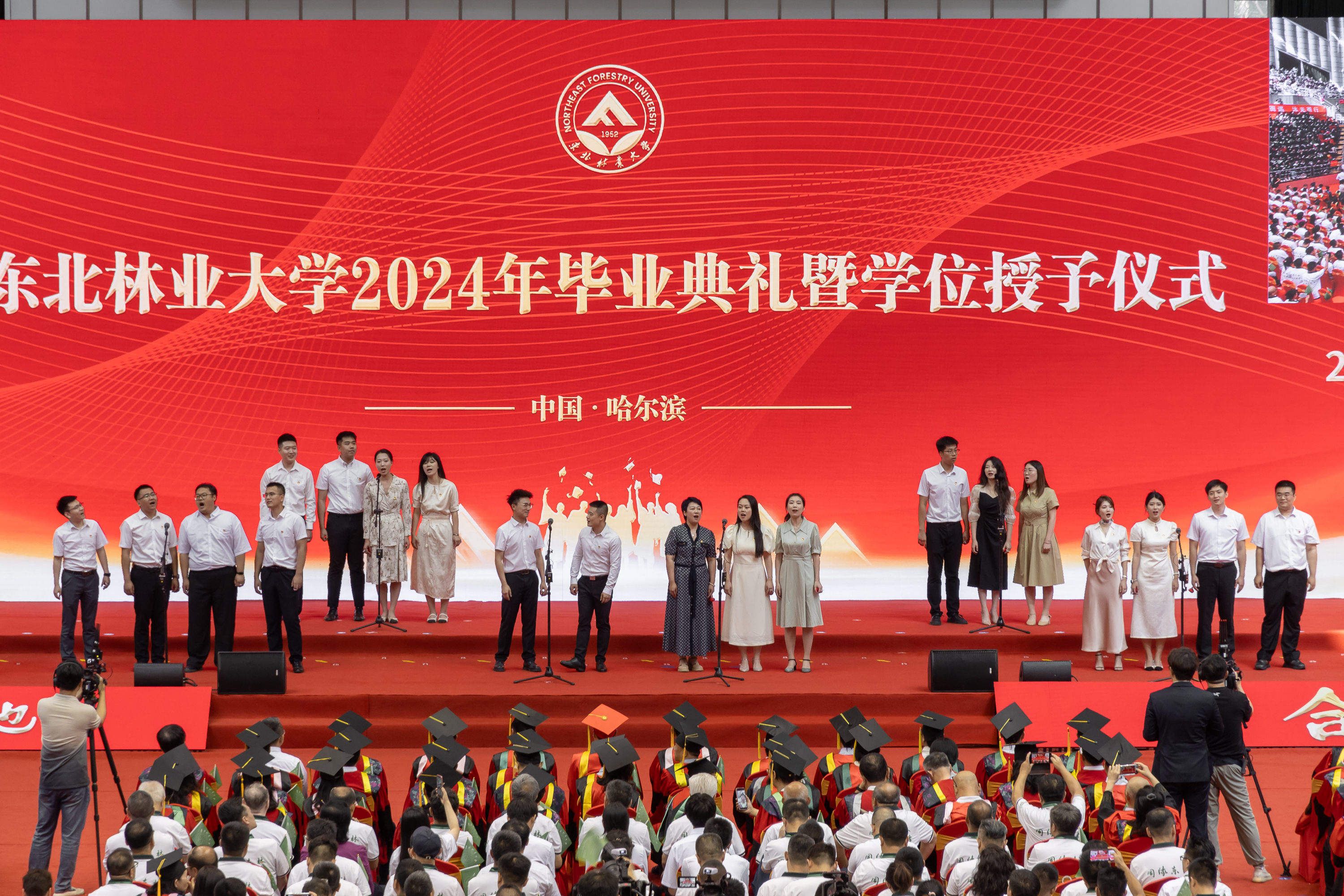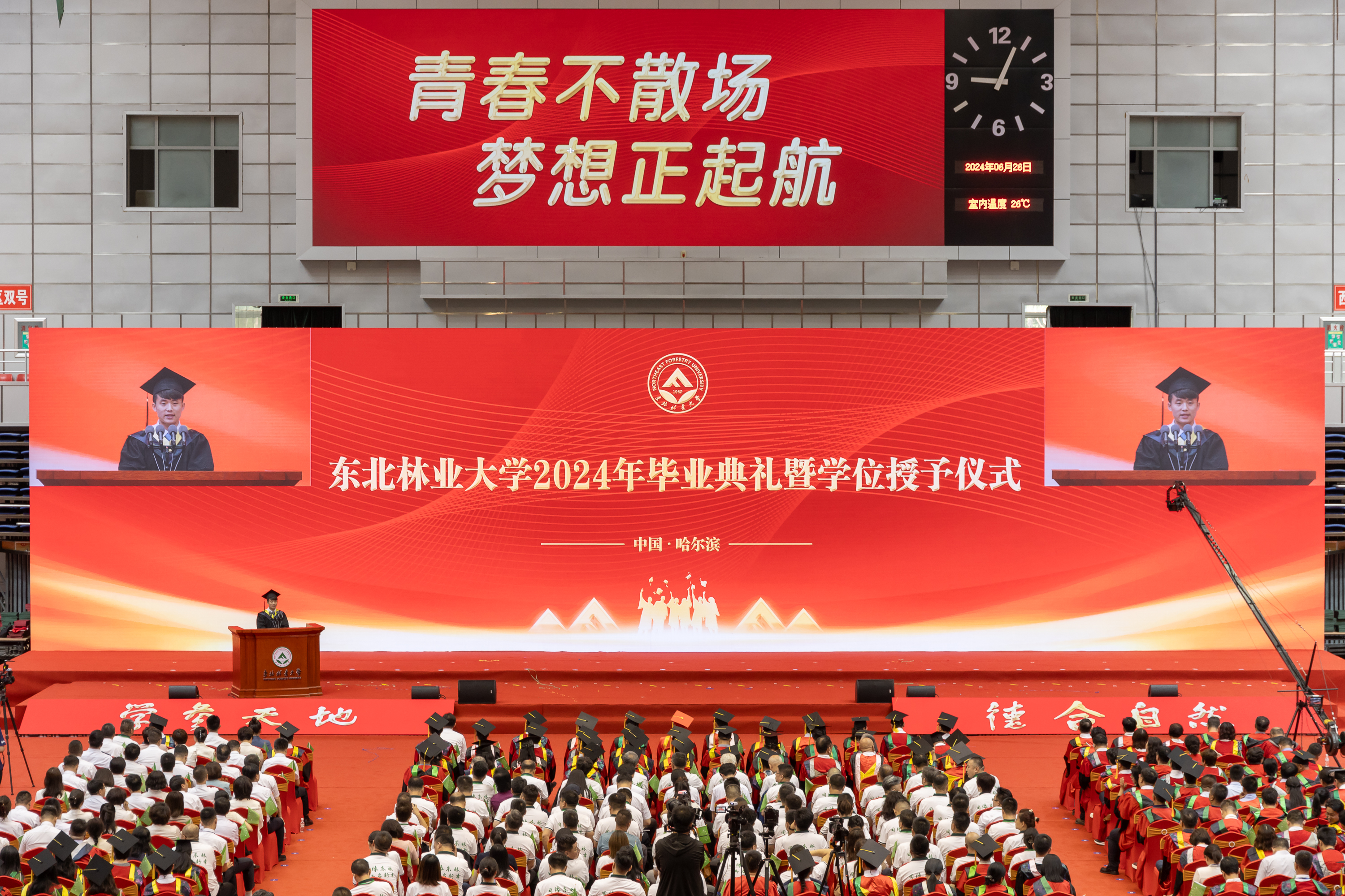 典礼在2024届毕业生、学校教师和校友代表、2024届毕业生辅导员的暖场歌曲《起风了》《相约东林》《一路生花》中拉开帷幕。