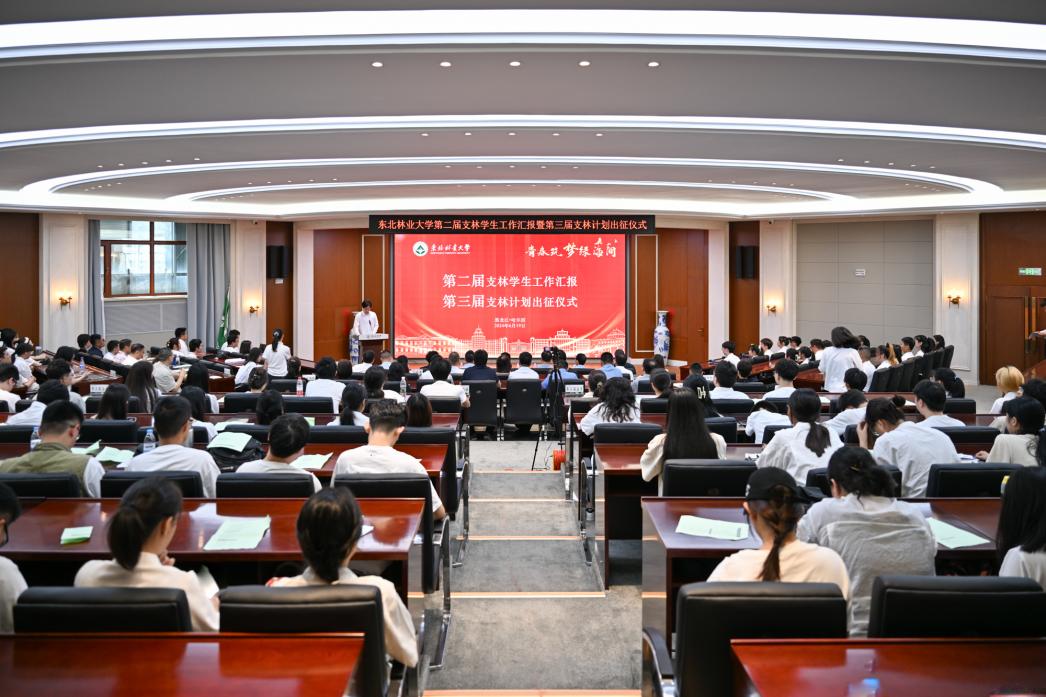 6月19日上午,学校在动保楼331会议室隆重举办第二届支林学生工作汇报暨第三届支林计划出征仪式。大兴安岭林业集团公司人力资源开发处副处长李庆峰,学校党委常委、副校长李明泽出席仪式。相关单位领导,学生代表,优秀大学生夏令营的营员参加活动。