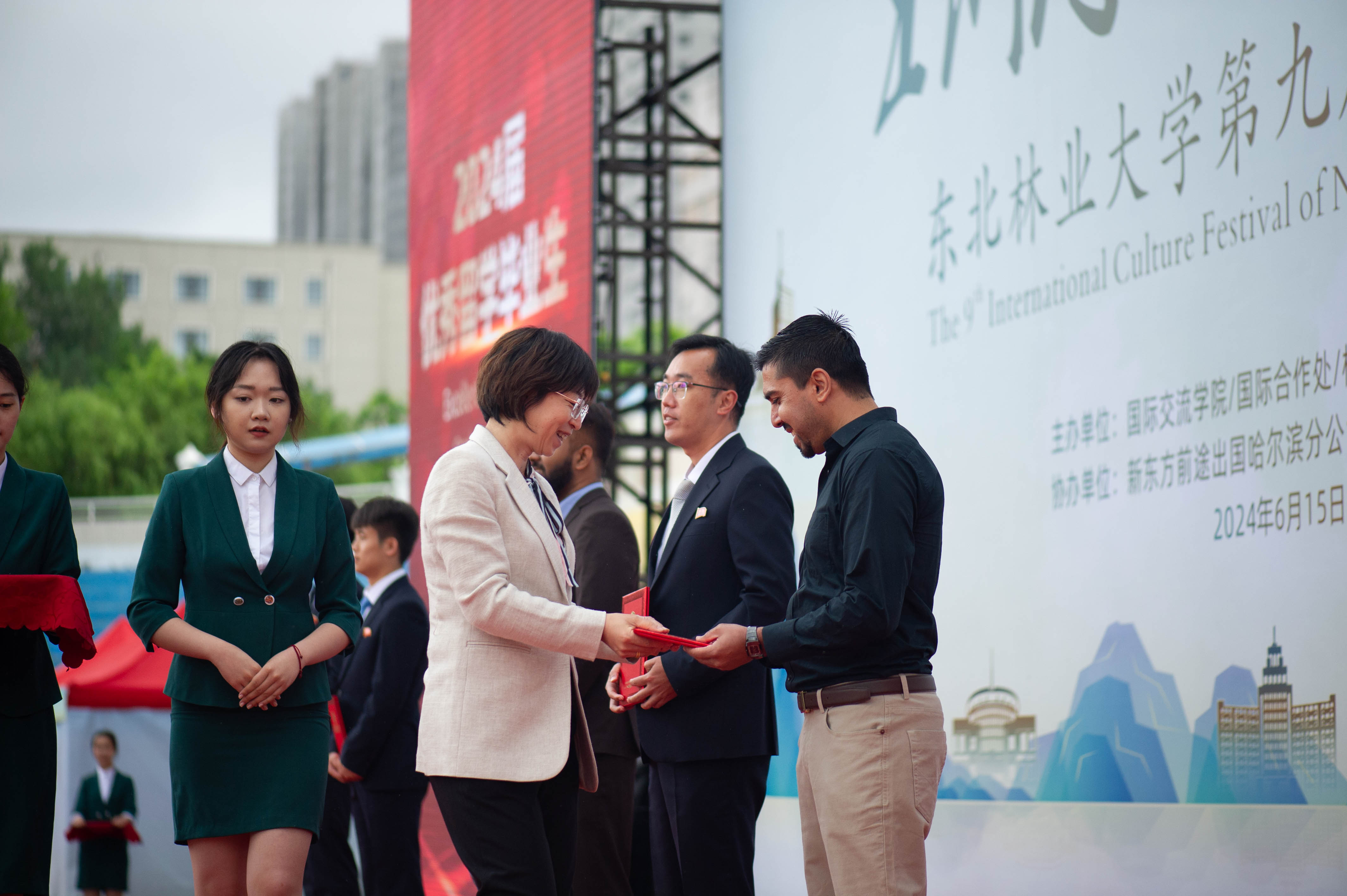五洲同行缘东林,逐梦亚冬向未来。6月15日,2024年星空游戏免费版下载“五洲同行逐梦亚冬”第九届国际文化节暨2024年留学生毕业典礼在学校田径场举行。学校党委常委、副校长刘守新,黑龙江省教育厅对外合作与交流处处长王少松,学校相关职能部门、专业学院负责人、省内兄弟高校师生代表和来自近四十个国家、地区的中外学子齐聚一堂,乐享国际文化盛宴。