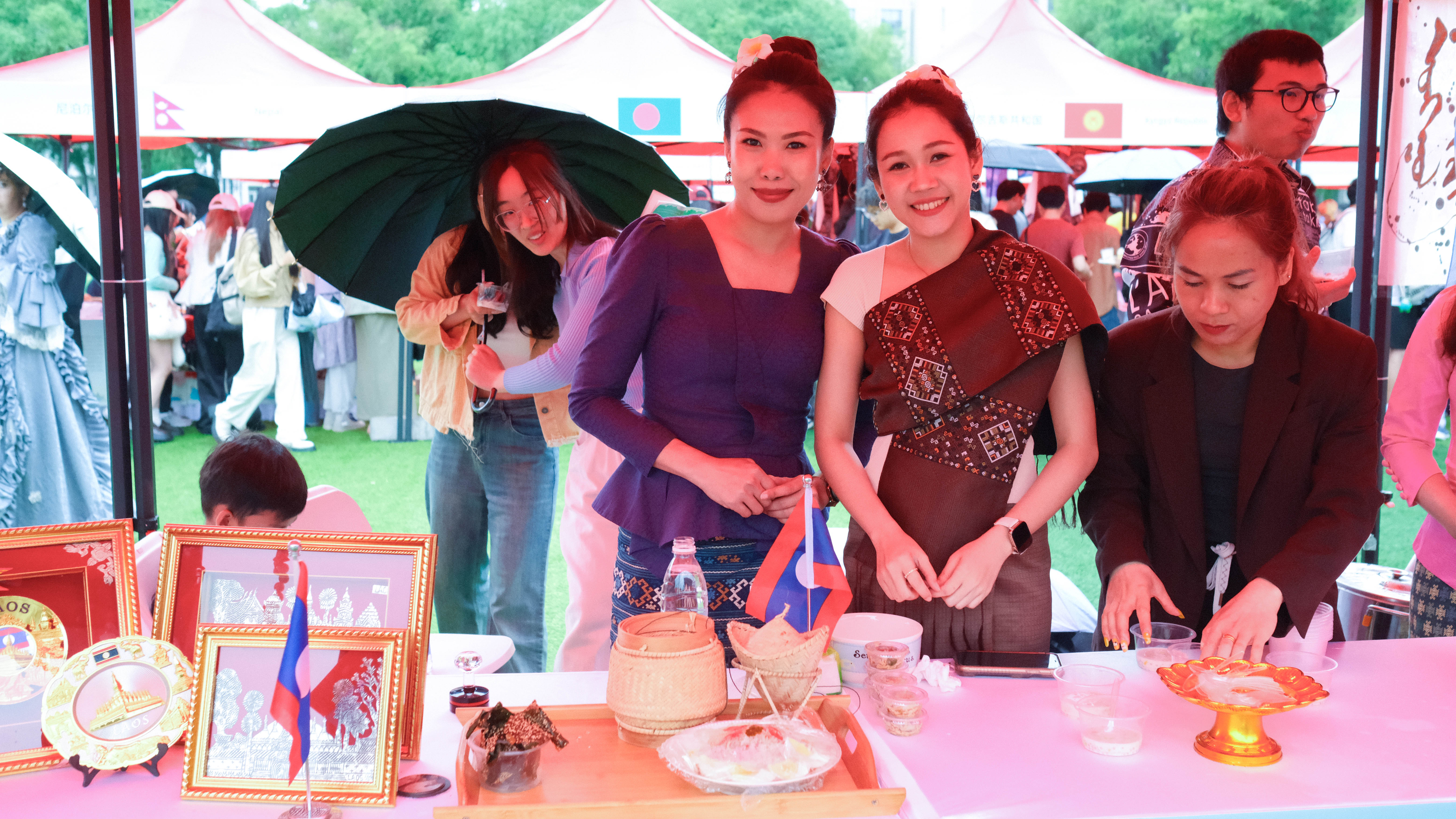 在国际文化展棚前,留学生们身着家乡传统服饰精心布置展位,或随音乐起舞、展示民族风采,或分享传统美食、传递舌尖味蕾。参与师生携文化节“国际护照”畅游“全球”,流连忘返。手工布艺、面塑等黑龙江省非遗展棚十分火爆,多彩文化的交流分享和现场热烈的气氛为中外师生搭建起了国际交流的平台。