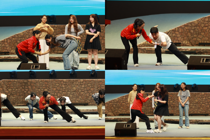 “在遇到困难或瓶颈时,如何保持乐观心态继续前行”“‘兔子战术’的成功秘诀是什么”“体育运动会给自己带来哪些变化和影响”……在互动环节,师生们争相举手提问,冠军们耐心细致地一一解答。随后,主持人随机挑选现场20余名同学走上舞台,冠军们围绕短道速滑姿态、花滑转体技巧、摔跤动作规范等方面,现场演示教学。