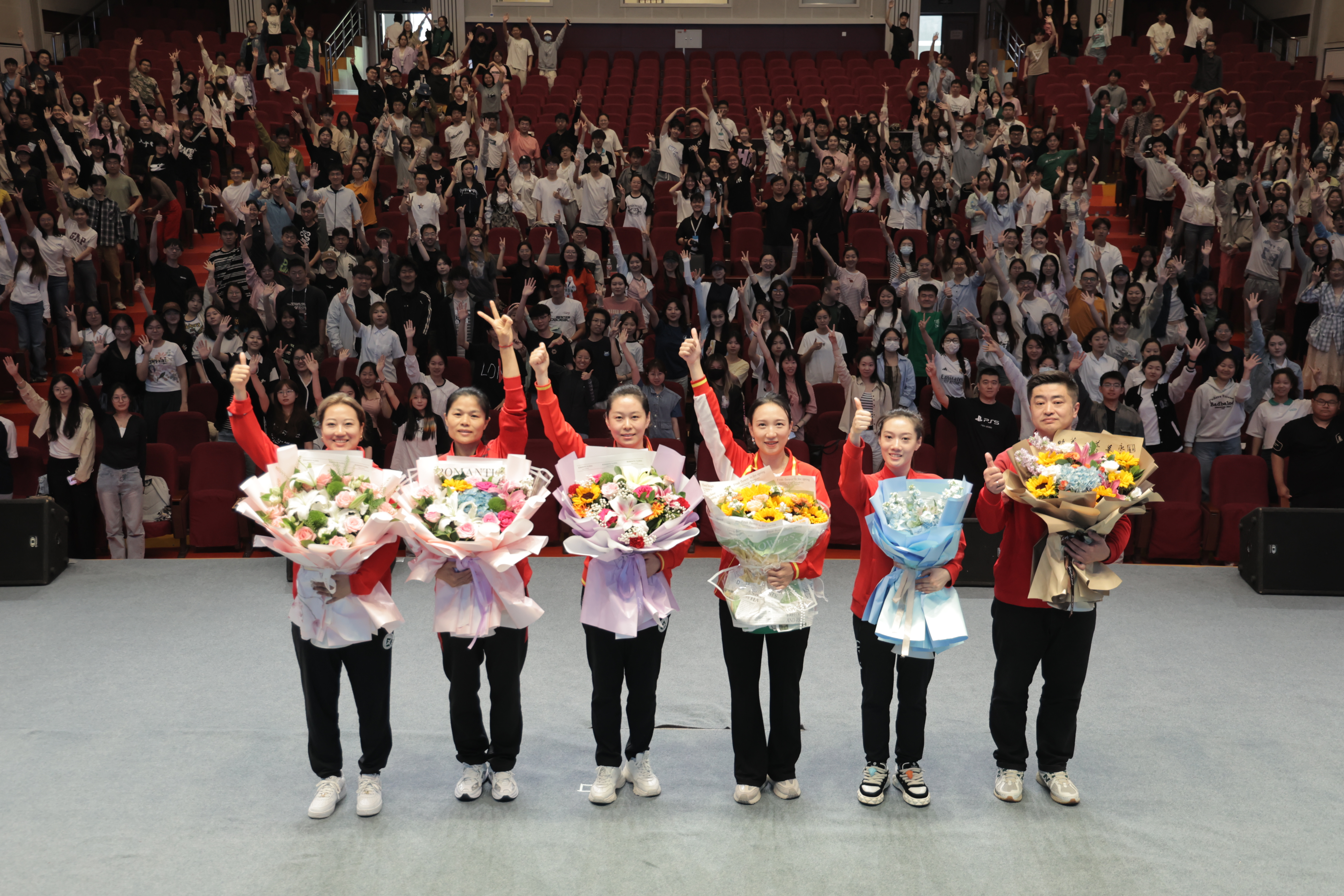 冠军们依次分享了各自在服役期间为国争光、无私奉献、团结协作、顽强拼搏的心路历程和光辉时刻,以及在担任教练期间与学员一起摸爬滚打、不断突破的动人事迹和取得的傲人成绩。李文文以视频形式向观众展示了个人成长历程和“夺金时刻”,她勉励东林学子要以善良的心待人,以专业的心做事,不管未来的路有多么坎坷,都要牢记初心,方能在人生的旅途中始终保持清醒的头脑和坚定的步伐;李爽结合个人参赛经历,鼓励同学们不论面对多少低谷和磨难,都要紧握梦想、脚踏实地、勇往直前,最终一定能抵达胜利的彼岸;朱秋颖分享了个人在专业学习道路上遇到的坎坷和困难,她表示,冠军仅代表一时的荣耀,而面对失败,如何让自己重拾信心、继续前行才是人生应有的态度和永恒的主题;于鑫娜阐释了冰壶运动的起源和技巧,她表示,冰壶是集健身与竞技于一体的运动项目,需要队员相互沟通、彼此协作,以实现团队能量最大化;杜超讲到,凡是比赛皆有胜利和喜悦、亦有失败和痛苦,但正是这些经历塑造了现在的自己,因为每一场比赛都是一次成长甚至蜕变;马海燕结合个人执教经历和感悟,鼓励同学们要珍惜参与亚冬会、服务亚冬会的机会,用实际行动为亚冬会的成功举办作出贡献,留下美好记忆。现场氛围热烈,喝彩不断,掌声连连,师生无不被冠军们的精彩事迹感染着、感动着。