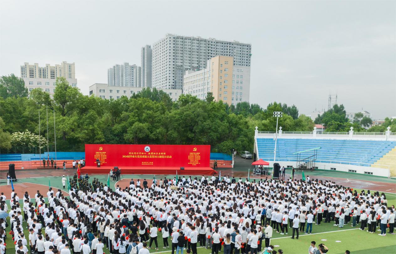 为深入学习贯彻习近平新时代中国特色社会主义思想,在新中国成立75周年之际,6月11日上午,学校在田径场举行了“明纪笃行守初心、挺膺担当启新程”——2024届毕业生党员重温入党誓词主题党日活动。学校党委书记张志坤出席活动并讲授微党课,党委常委、副校长张春雷主持活动。相关职能部门负责人、部分学院党委书记、各学院党委副书记、全体毕业生辅导员和2024届全体毕业生党员共同参加活动。
