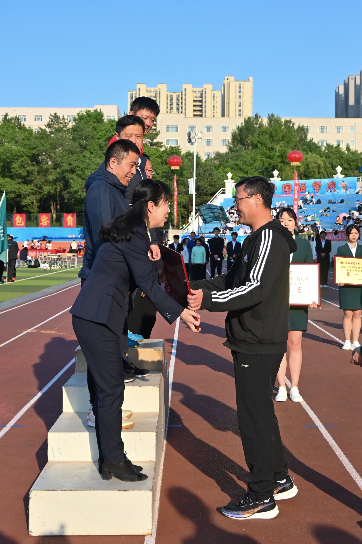 党委常委、副校长张春雷致闭幕词。张春雷代表大会组委会向在本届运动会中获得优异成绩的运动员及获奖单位表示祝贺,向为本届运动会顺利召开而付出辛勤劳动的全体工作人员和观众同学们表示感谢。张春雷指出,体育比赛是浓缩的人生,重要的不只是输赢,还有我们的永不服输。体育带给我们的不只是健康的体魄,更有从心底燃起来的拼搏力量。他希望大家以此次运动会为契机,坚持体育锻炼,涵养自信自强、刚健有为的精神风貌,做有理想、敢担当、能吃苦、肯奋斗的新时代东林人,在学校发展各个领域勇当排头兵和生力军,创造出无愧于时代、无愧于东林的光荣业绩,奋力书写为中国式现代化挺膺担当的青春篇章。