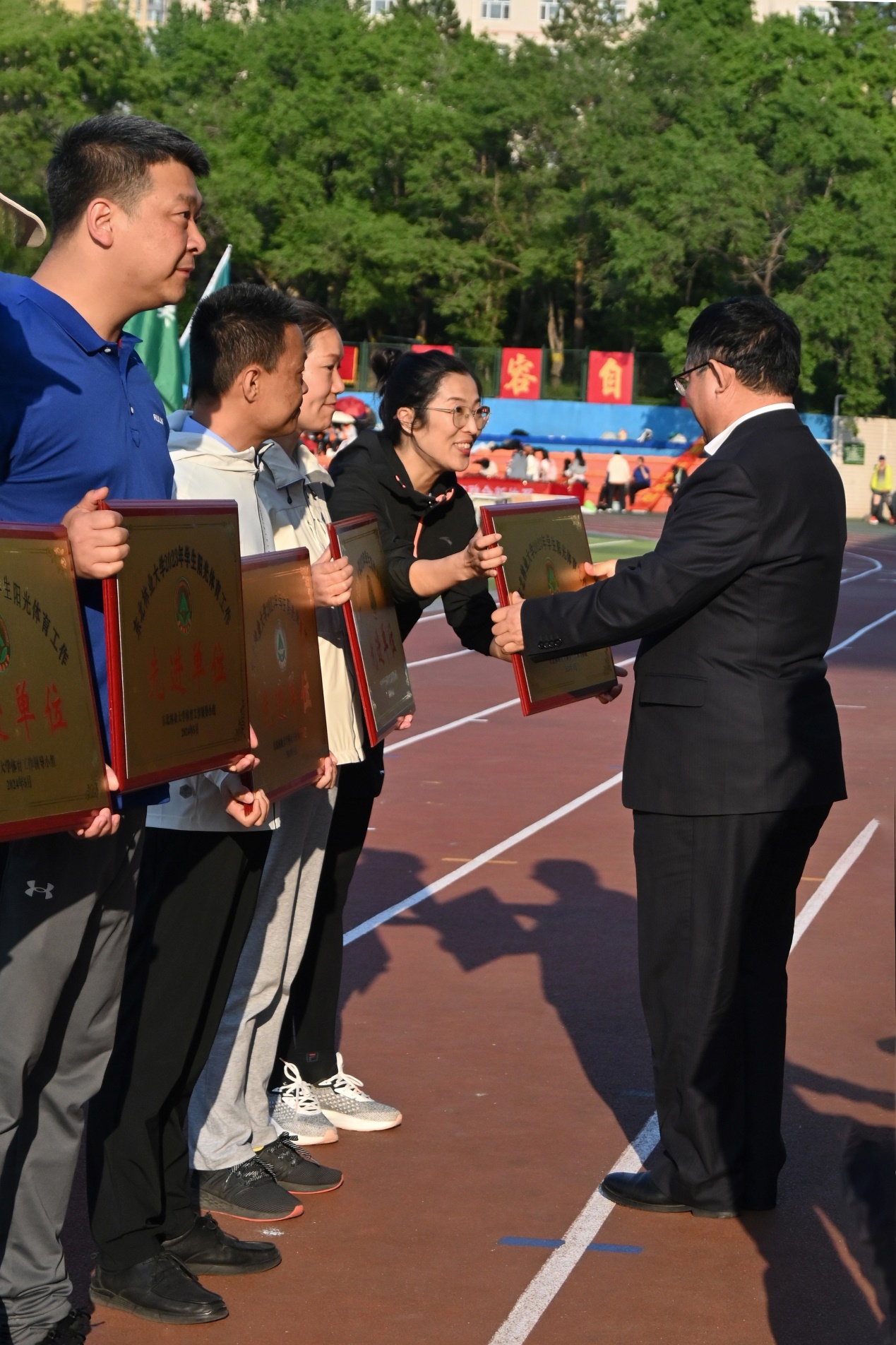 6月4日下午,学校第五十六届田径暨阳光体育运动会圆满完成各项赛程,在田径场举行了闭幕式。闭幕式由体育部主任关大鹏主持。