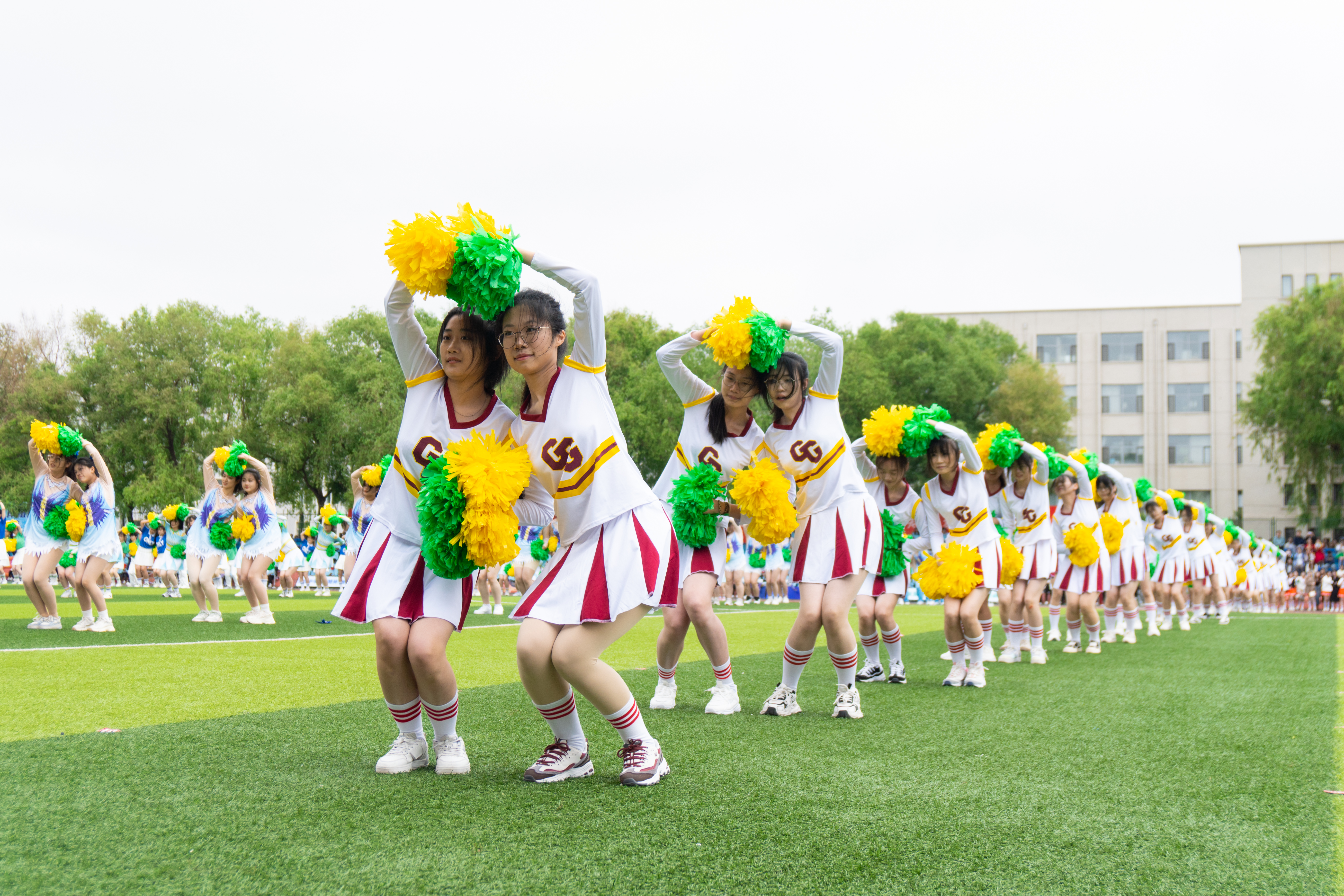 开幕式检阅中,庄重威严的国旗仪仗队、英姿飒爽的刀旗队、青春洋溢的花束队以及参加比赛的各支代表队,穿着整齐的服装,喊着嘹亮的口号,迈着矫健的步伐依次走过主席台,接受学校领导和师生的检阅。