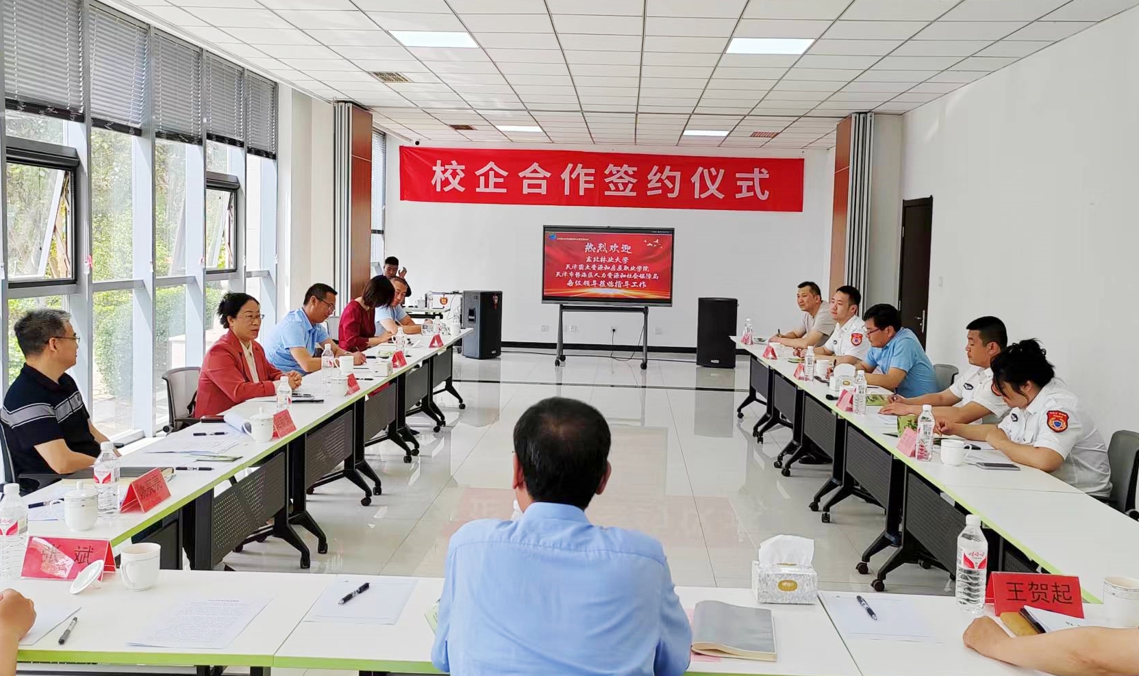 宋吉红一行与天津滨海创业园林公司、天津静海区人力资源和社会保障局、天津国土资源和房屋职业学院合影留念