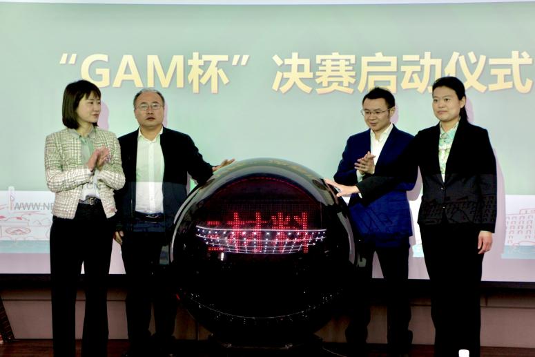 出席仪式的嘉宾共同按动“GAM杯”启动仪,标志第九届“GAM杯”黑龙江省大学生材料化学创新创业大赛决赛正式启动。
