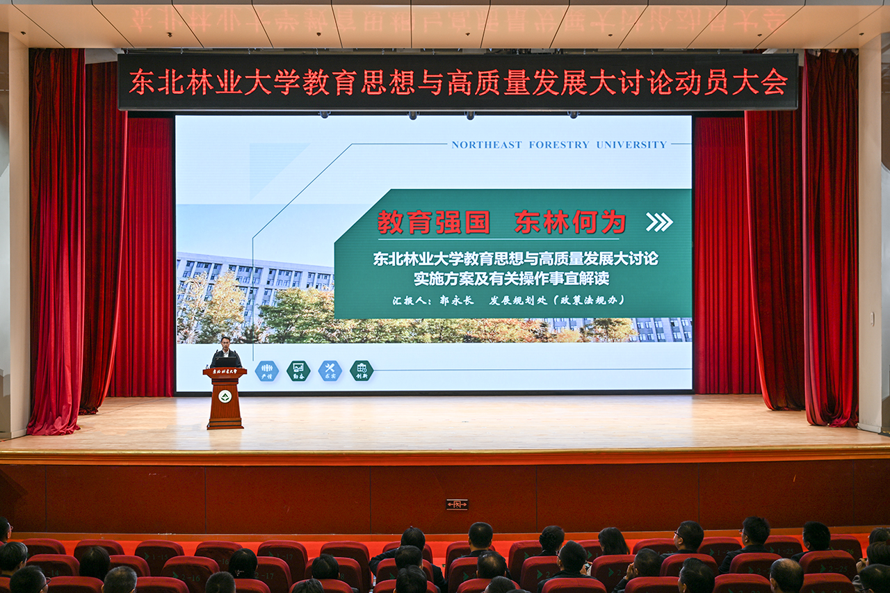 宋文龙强调,我们要审时度势,主动求变,深刻认识开展大讨论的重要意义。他表示,当前国家战略需求提出了新任务、高等教育变革带来了新要求、生态文明建设和林业产业发展创造了新机遇,我们要坚持问题导向,对标对表,清醒认识学校发展存在的不足和短板,坚持目标导向,聚焦学校的部署与要求,破局突围,高质量完成本次大讨论的主要目标任务,编制学校中长期发展战略规划和服务生态文明建设实施方案;谋定符合国家社会和新质生产力发展需求的学科专业布局;提升拔尖创新人才培养质量;有组织提升科技创新和社会服务能力;加快培育领军人才、提升教师学术及教育教学能力;深化综合改革,提升现代治理能力,全力推进学校特色发展和高质量发展。