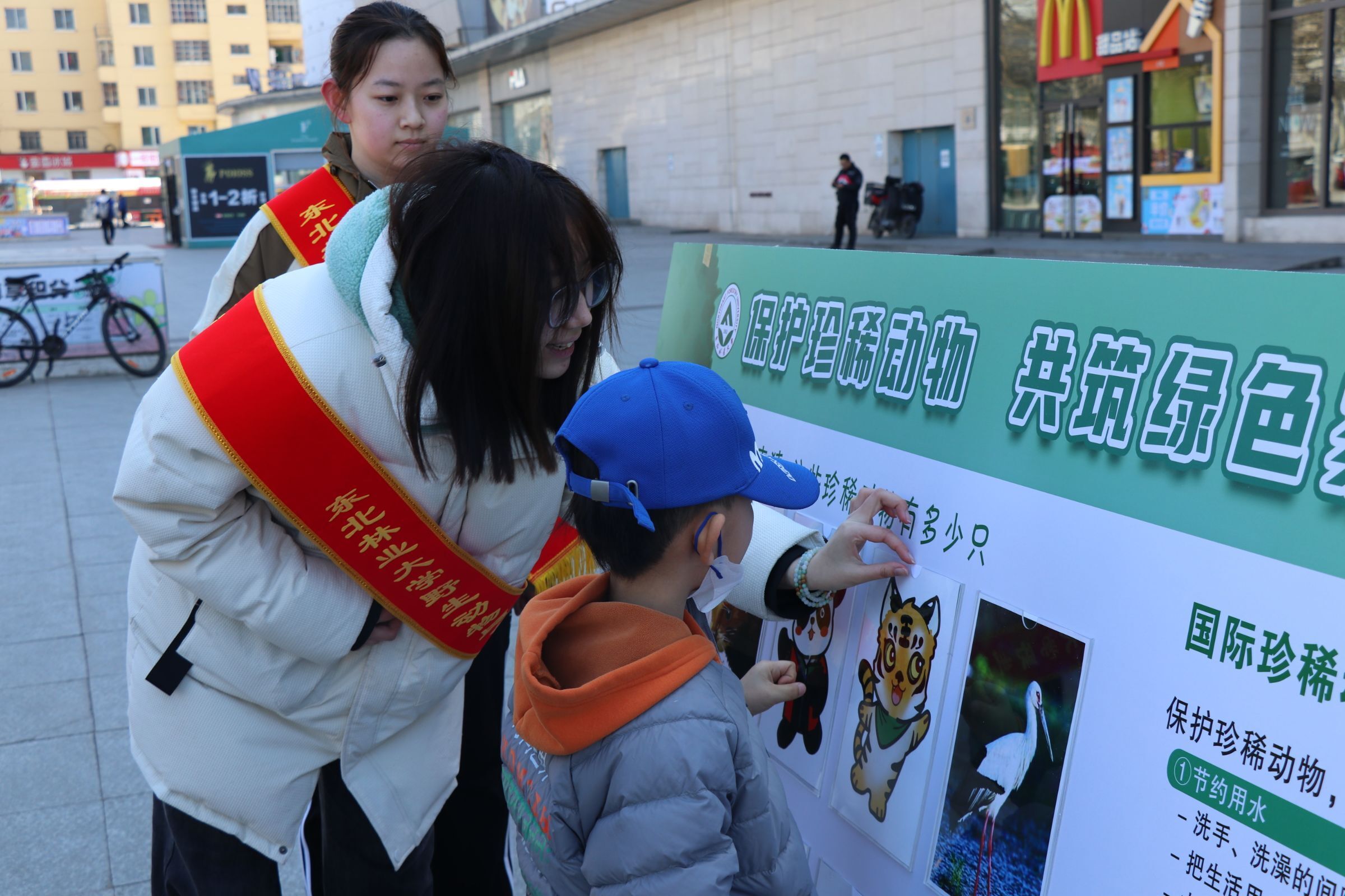 4月8日,星空游戏免费版下载野生动物与自然保护地学院自然之声科普宣讲团、“鹤魂薪火,生态育仁”辅导员工作室核心成员来到香坊区乐松广场,组织开展“国际珍稀动物保护日”宣传活动,旨在深化生态文明教育,增强公众保护珍稀动物意识。现场发出“保护珍稀动物,共筑绿色家园”的倡议,号召民众积极参与到野生动物保护工作中来,争做生态文明先行者。