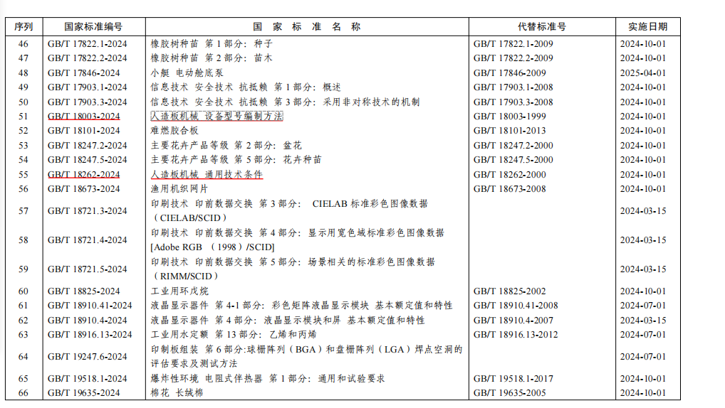 日前,国家市场监督管理总局、国家标准化管理委员会正式批准406项国家标准,其中,由我校机电工程学院(国家木工机械质量检验检测中心)花军教授、杨春梅教授等团队主持修订的《人造板机械通用技术条件》(GB/T 18262-2024)《人造板机械设备型号编制方法》(GB/T 18003-2024)《人造板机械单板干燥机》(GB/T 6197-2024),将于2024年10月1日起正式实施,标志着东林服务行业产业高质量发展取得新成效。
