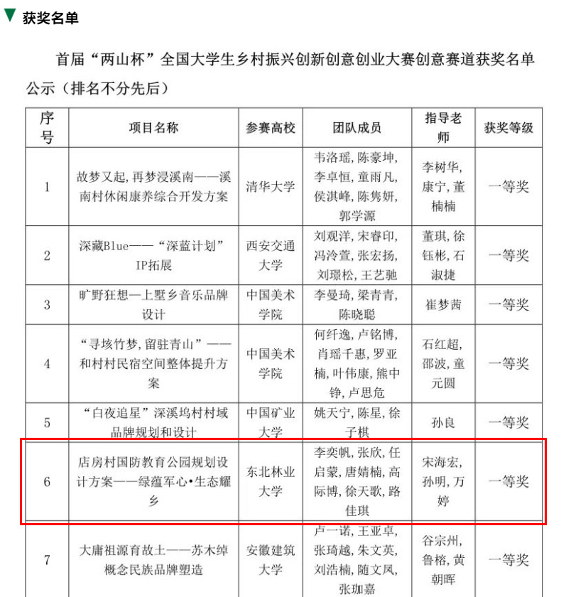 9月30日,由新华通讯社主办,湖州市安吉县、新华社品牌工作办公室、新华社浙江分社承办,浙江财经大学作为秘书处单位举办的首届“两山杯”全国大学生乡村振兴创新创意创业大赛圆满落幕。星空游戏免费版下载园林学院城乡规划系派出的参赛团队获得创意赛道一等奖。参赛团队由指导教师宋海宏、孙明、万婷,城乡规划学硕士研究生李奕帆、张欣、任启蒙、唐婧楠、高际博、徐天歌、路佳琪组成,作品名称为规划设计类的《店房村国防教育公园规划设计方案—绿蕴军心·生态耀乡》。