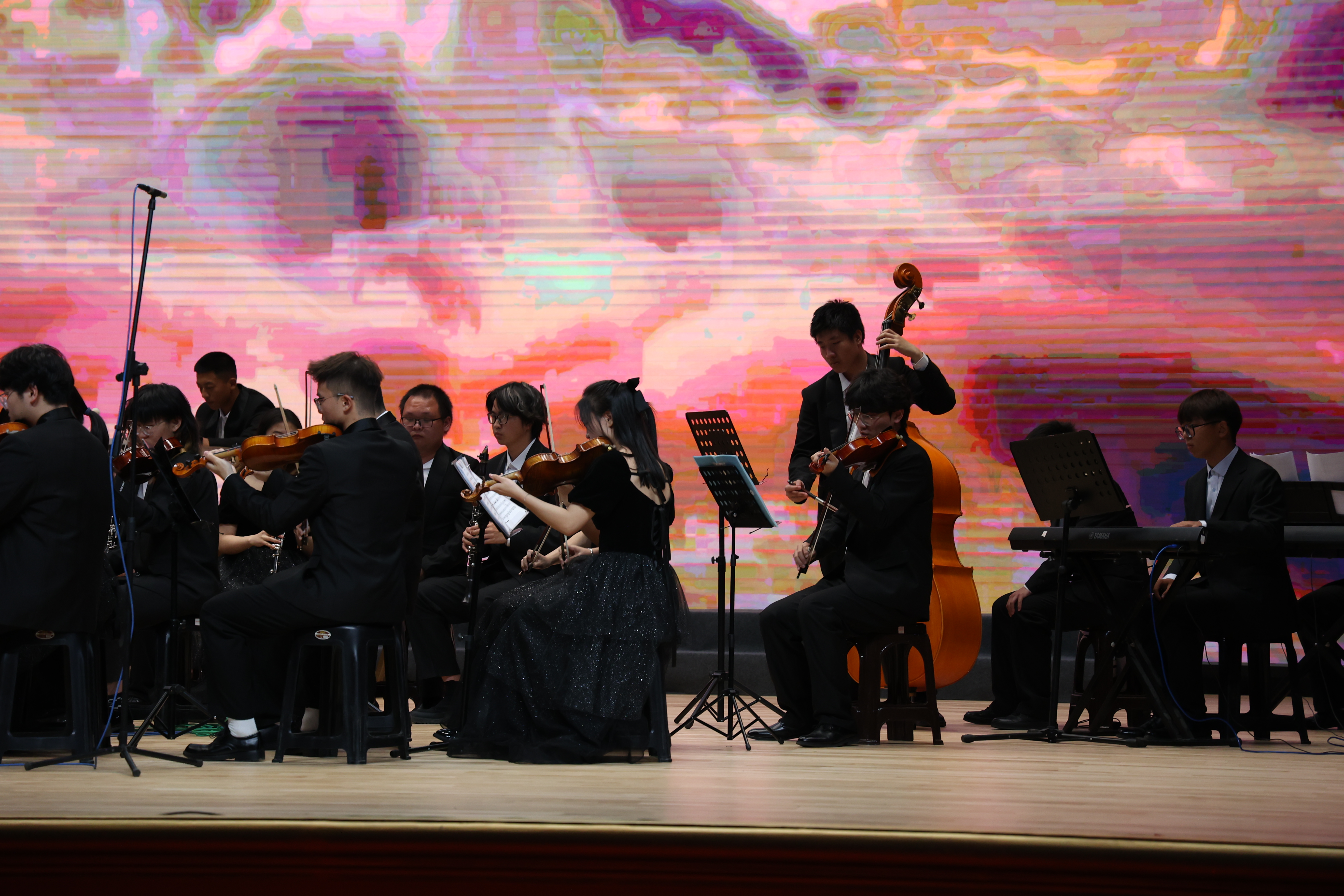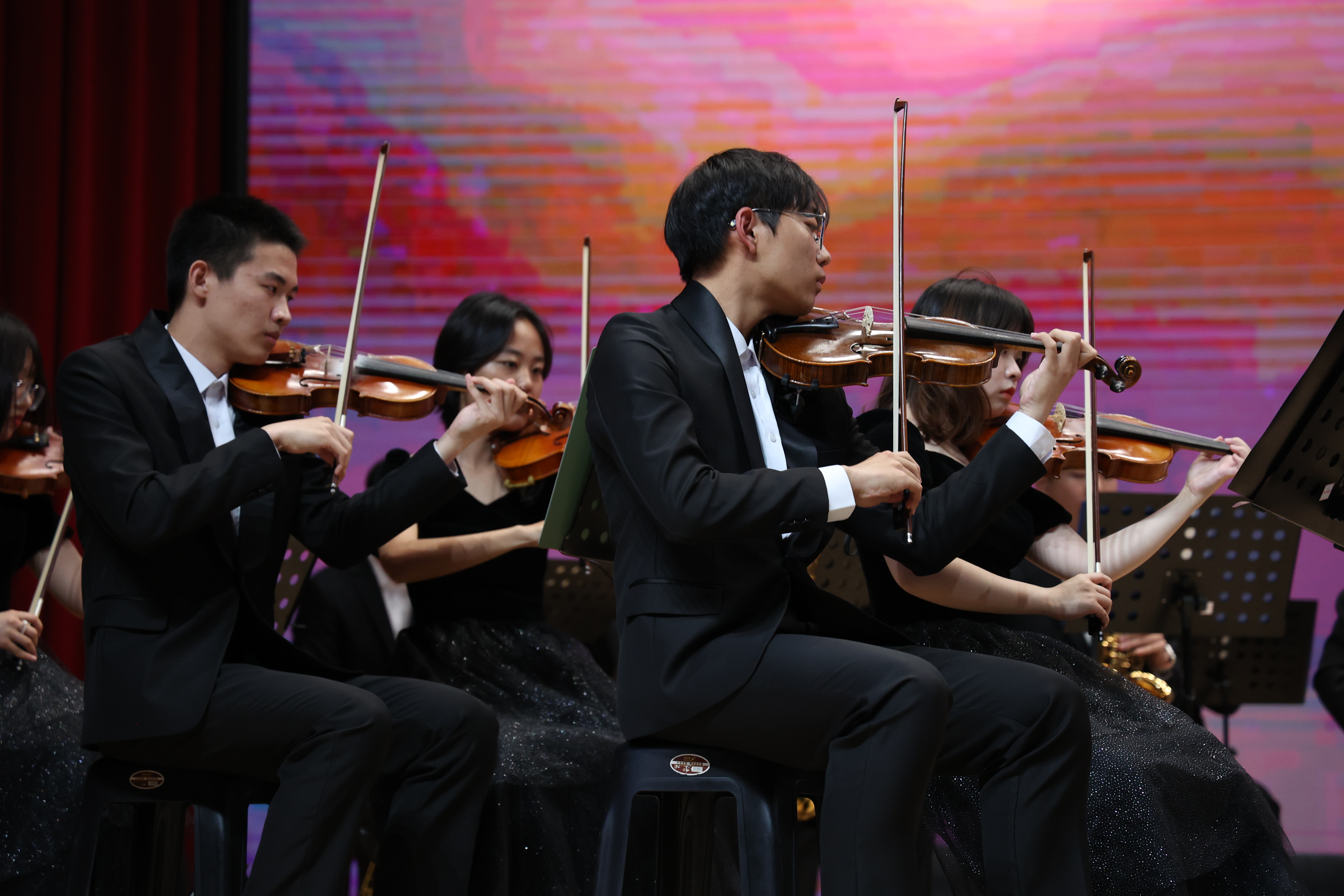 随后,大学生艺术团西洋管弦乐团的一曲《北京喜讯到边寨》,激昂的旋律、欢快的曲调,将观众热情再次拉满;合奏《埃及进行曲》以恢宏气势和蓬勃力量,展现了东林青年的奋斗模样;欢腾热闹、生机勃勃的《卡门序曲》像是将观众置身于斗牛场,点燃了观众心中的“英雄魂”;节奏铿锵、态度鲜明的漫威灵魂之曲《The Avengers》,让东林学子的青春激情更加高涨、前行脚步更加坚定;音乐会在一曲喜悦浪漫、惟妙惟肖的《康康舞曲》中圆满落幕。