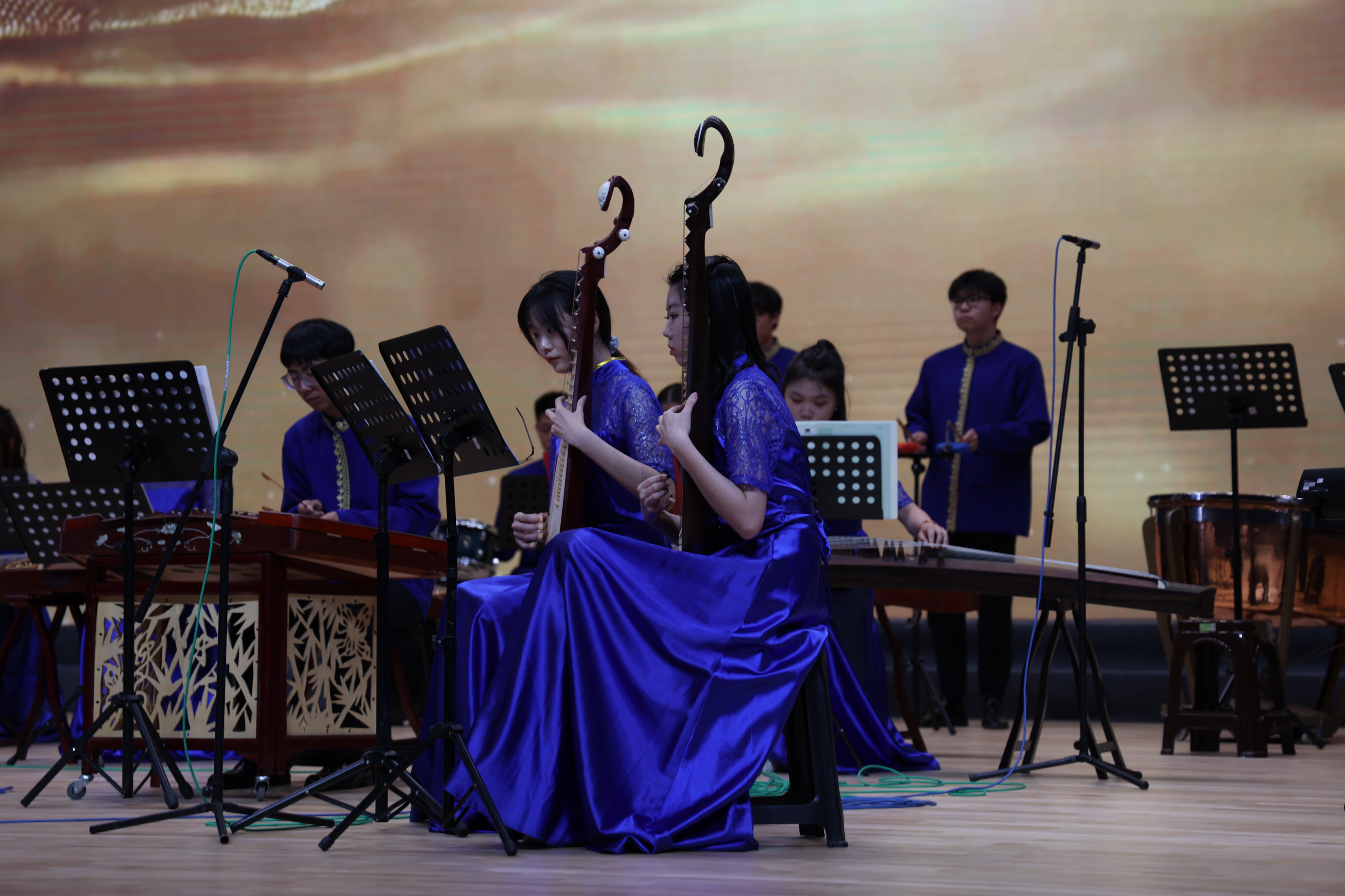 在国家一级指挥孙南航教授的引领下,大学生艺术团民族管弦乐团的一曲《喜洋洋》拉开了音乐会的帷幕,明快的节奏、悠扬的乐声,让观众瞬间沉浸在音乐氛围中;曲调清越、富有活力的《步步高》,饱含着母校对毕业学子成长进步的美好祝愿;经典高雅、意味悠长的《紫竹调》,更是传递着莘莘学子对母校的眷恋之情;合奏《花好月圆》以其极具感染力的演奏方式,迅速将现场气氛推向了高潮。