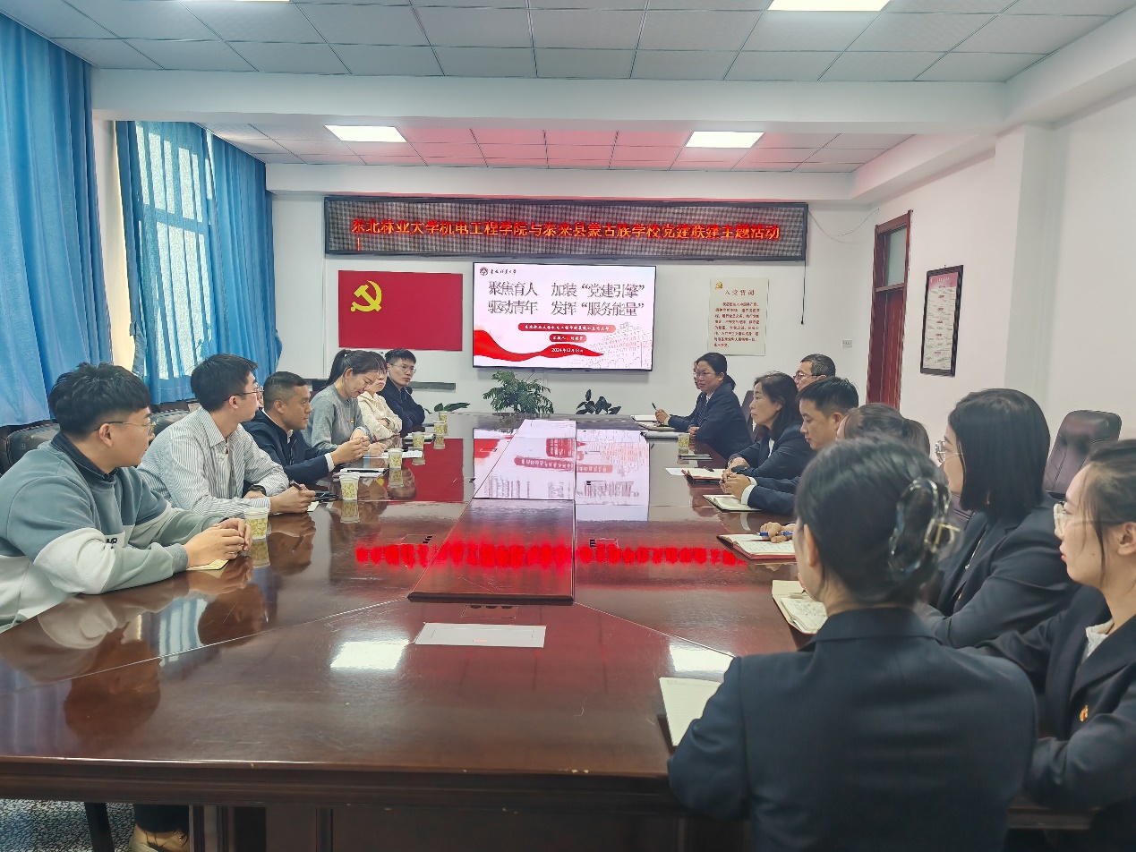 双方联学了党的二十届三中全会精神、全国教育大会精神,围绕如何推进教育科技人才体制机制一体改革、义务教育优质均衡发展、大中小学思想政治教育一体化等内容交换了意见。白秀梅介绍了蒙古族学校党支部“红岗先锋,思政领航”党建品牌的工作成效。刘朝贤现场展示了晨曦公益党支部“晨曦伴晚晴”党建品牌的育人成果。徐国祺老师推介了全国首个农林智能装备工程专业招生情况,诚邀泰来学生报考东林。闫杰同学代表博士生党支部表示,要设计更多更好更接地气的党建活动,服务乡村教育振兴,当真博士、真专家。双方一致同意,将同梦公益党支部此前在泰来县教育局设立的“快乐魔方”科学教育工作坊,于2025年引入蒙古族学校,实现“县中+村小”工科教育联动。
