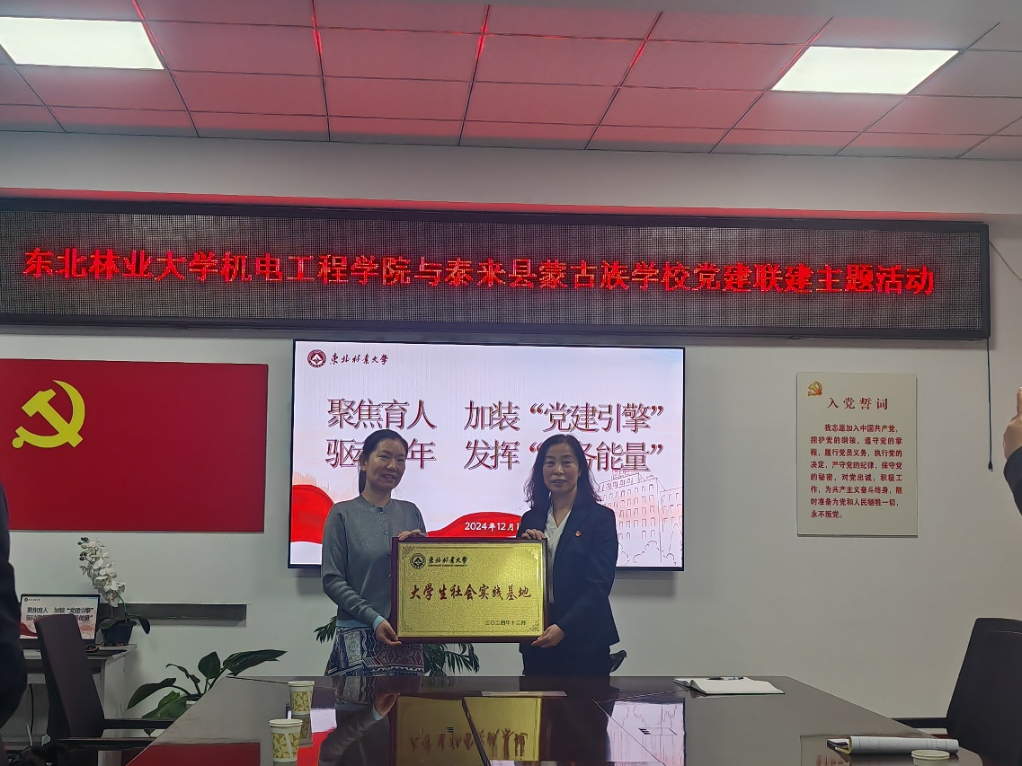 为进一步学习贯彻全国教育大会精神,提高思政引领力,更好落实立德树人根本任务,12月14日,校级辅导员工作室、机电工程学院“躬行”辅导员工作室赴泰来县蒙古族学校调研实践育人工作。当天,双方共建大学生社会实践基地举行授牌仪式。工作室主持人、学院正处级组织员、党委副书记兼副院长郑燕,以及辅导员、学生代表,泰来县蒙古族学校校长白秀梅以及学校师生代表共同参加。