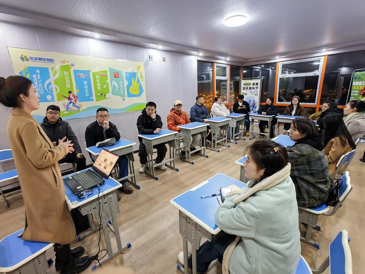学院与团香坊区委合作,在香坊区健康路街道青年之家面向社会青年开设美育课堂,旨在引导学生发挥学科特长,强化学科实践,推动美育教育向第二课堂延伸。