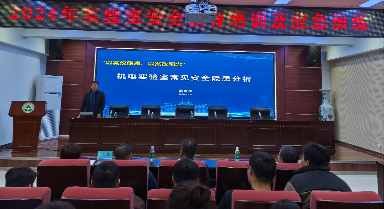 11月13日下午,实验室管理与条件保障处联合机电工程学院、土木与交通学院,在成栋楼722会议室举办工科实验室安全教育培训和急救演练。现场邀请吉林大学化学国家级实验教学中心副主任魏士刚作专题辅导。实验室管理与条件保障处处长王玉龙、副处长刘莉,机电工程学院党委书记王佳彤、副院长李健,土木与交通学院副院长王立峰,以及相关实验教师和研究生170余人参加培训。活动由刘莉主持。