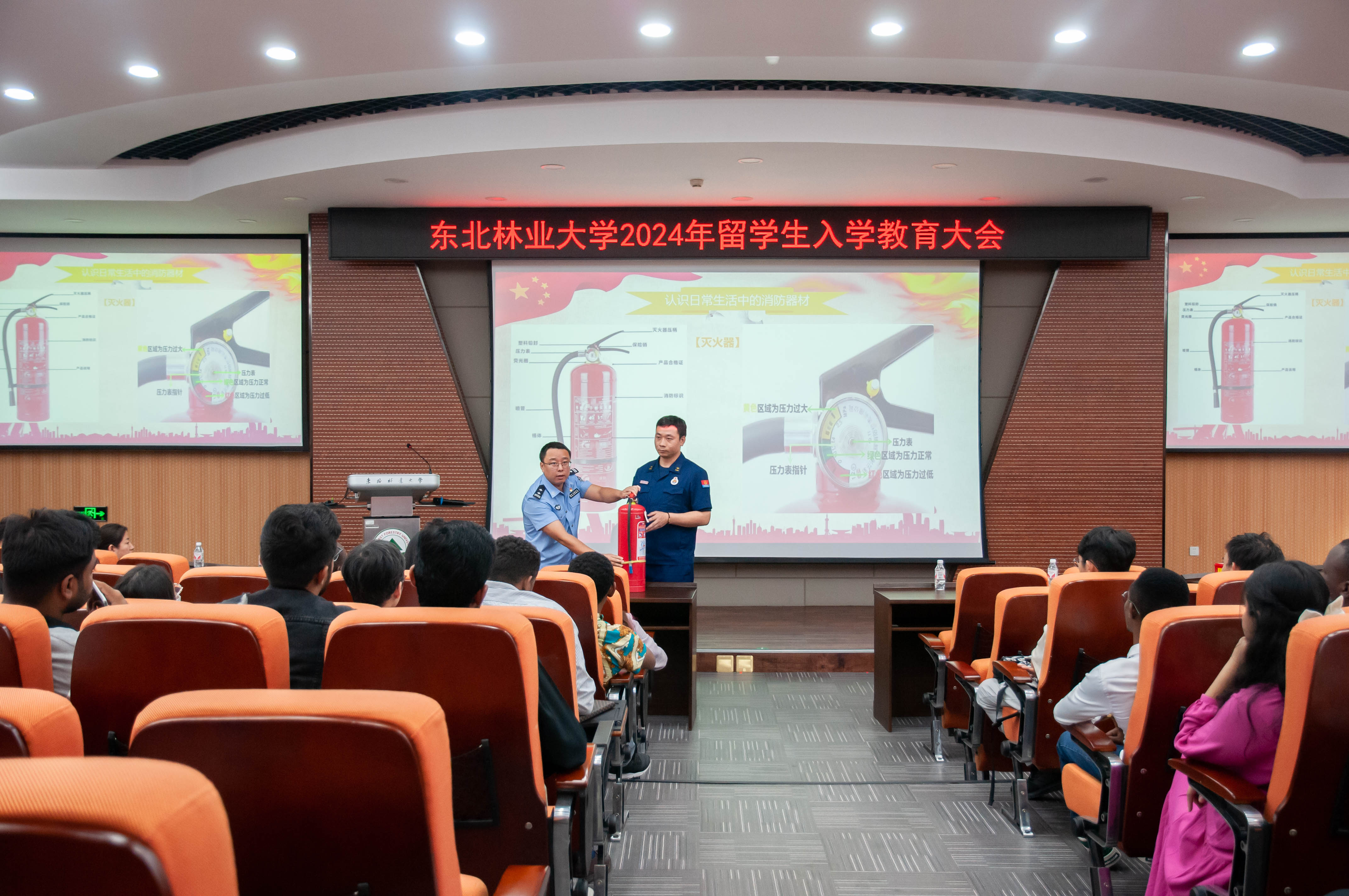学校保卫处消防安全监督管理科科长王宇新为留学生作消防安全讲座。王宇新结合真实案例,分析了火灾发生原因,介绍了逃生路线的选择和高楼逃生要领,并演示消防设备的正确使用方法及火灾的防范和扑救注意事项。国际交流学院留学生辅导员徐涵详细讲解了我校校规校纪、住宿须知、水电使用等校园安全知识,提醒同学们时刻保障自身和财产安全,共同营造安全有序的校园环境。