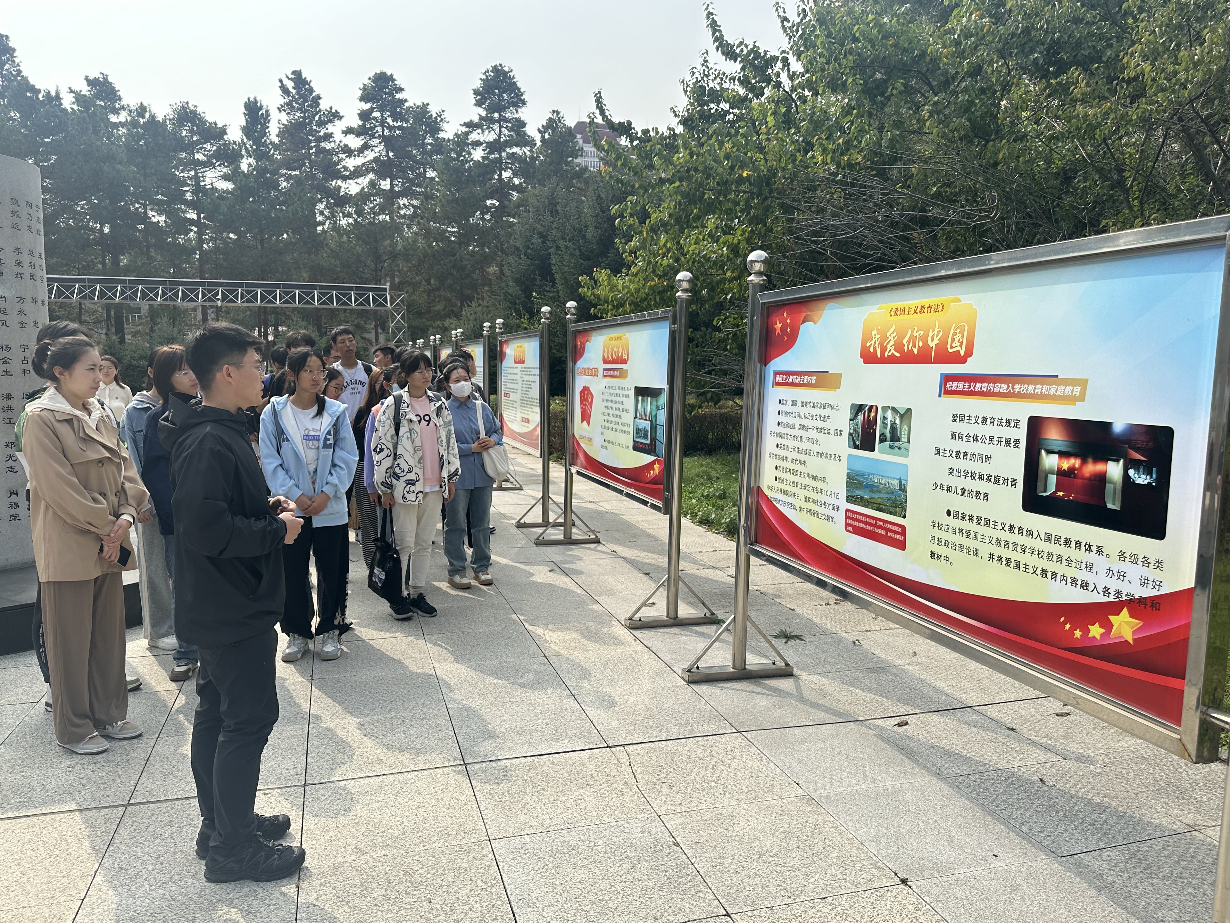 在实施爱国主义教育法主题烈士事迹展廊中,师生代表参观了烈士英名录碑,了解到不同时期牺牲烈士的英雄事迹,并认真学习了今年1月1日起施行的《中华人民共和国爱国主义教育法》。通过辅导员老师的讲解,新生们了解到爱国主义教育的重要作用及积极影响,进一步营造尊法、学法、守法、用法的浓厚氛围。