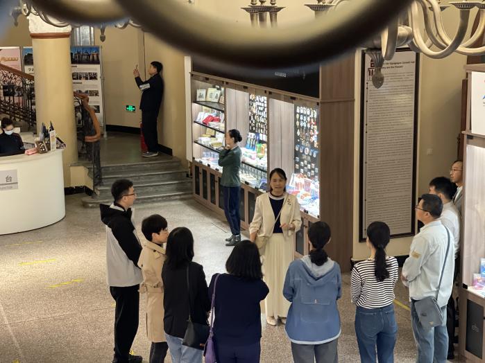 工业设计党支部党员、家居与艺术设计学院党委副书记、副院长刘子英在这座充满历史韵味的建筑中,为全体党员上了一堂生动而深刻的党课。她和全体党员一起边参观边讲解,从会堂的建筑结构、文化元素到老会堂的历史背景和文化内涵,结合哈尔滨的历史文化,深入浅出地阐述了新时代党员的使命与担当,让大家深刻感受到了中国特色社会主义文化的深厚底蕴和繁荣发展,更在心灵深处激荡起对党对祖国的无限热爱和自豪。