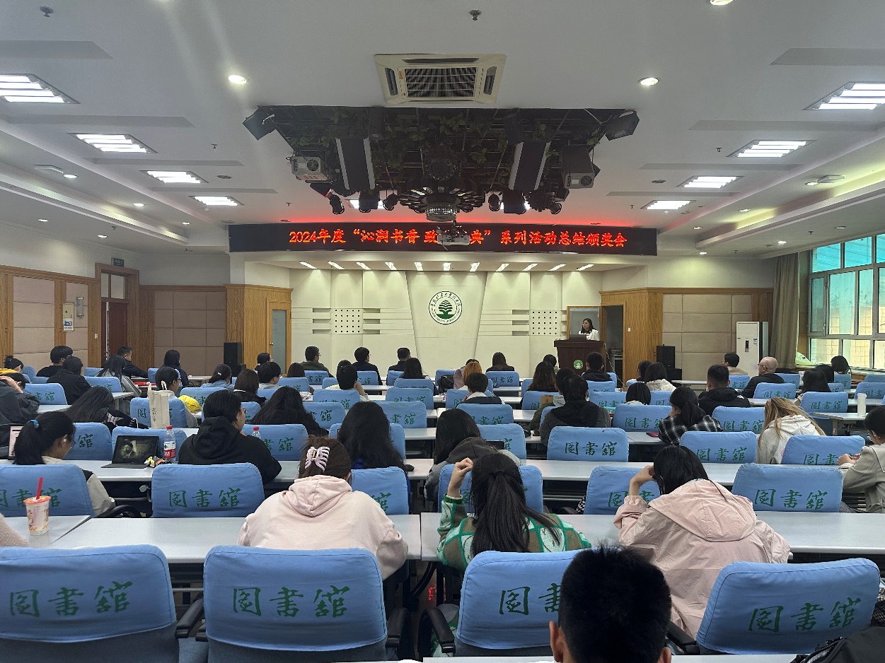 9月25日下午,图书馆在多功能厅召开了“沁润书香 致敬经典”系列活动总结表彰会。图书馆主要领导、数据商负责人、获奖读者代表及学生读者近80余人参会。会议由阅读推广部主任刘明主持。