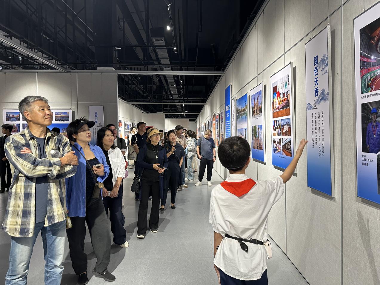 在中华人民共和国成立75周年到来之际,家居与艺术设计学院举行“践行教育家精神,争做新时代大先生”主题教育活动。近日,学院全体教师及部分学生代表前往香坊区劳动公园,参观庆祝中华人民共和国成立75周年“香坊真香 强国有我”专题展览。